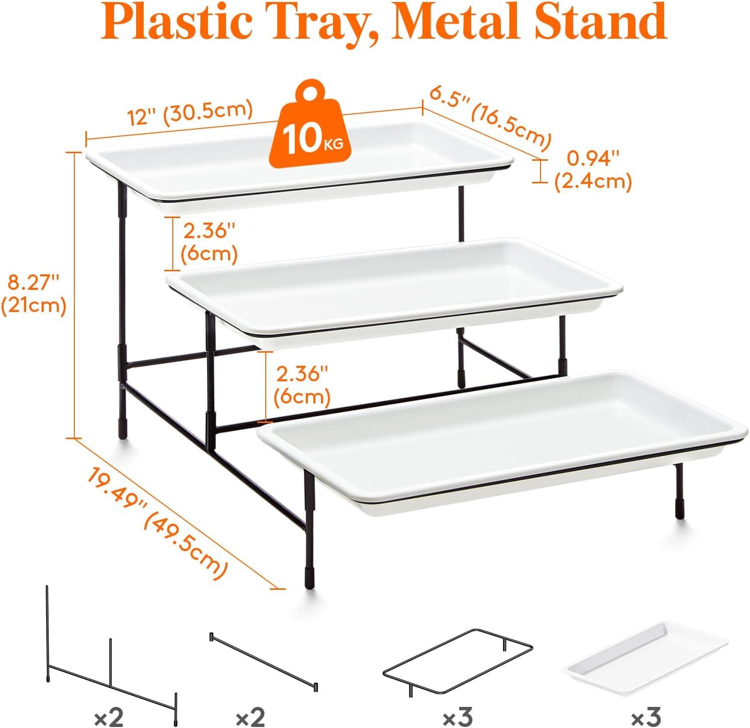 Save Space: The 3 tiered serving tray features a 3-tier design that maximizes vertical space, adding elevation to your food display. It efficiently utilizes limited table space while presenting the food in an organized and appealing manner. When not in use, the trays can be stacked for easy storage.