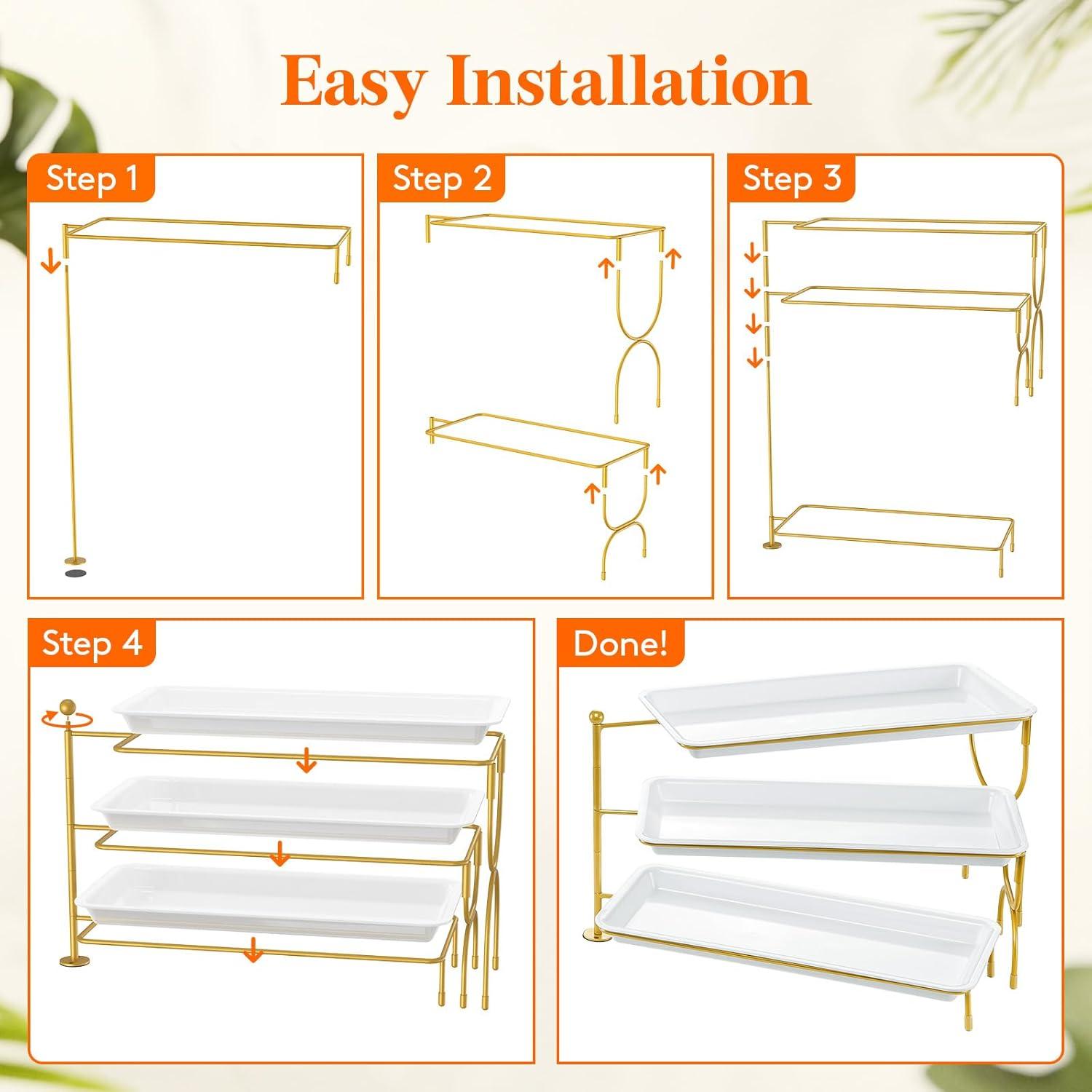 Easy Convenience: The overall dimensions are 14.4″ × 6.5” × 9.8″; Installation and disassembly are quick and easy; The serving trays can be used individually and easily cleaned by hand or wiped with a damp cloth; Note: It isn't dishwasher safe