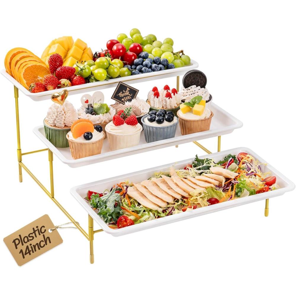 Space-Saving: The serving platters and trays maximize vertical space, adding height to your food display while presenting food in an organized and appealing manner; When not in use, the trays can be stacked for easy storage