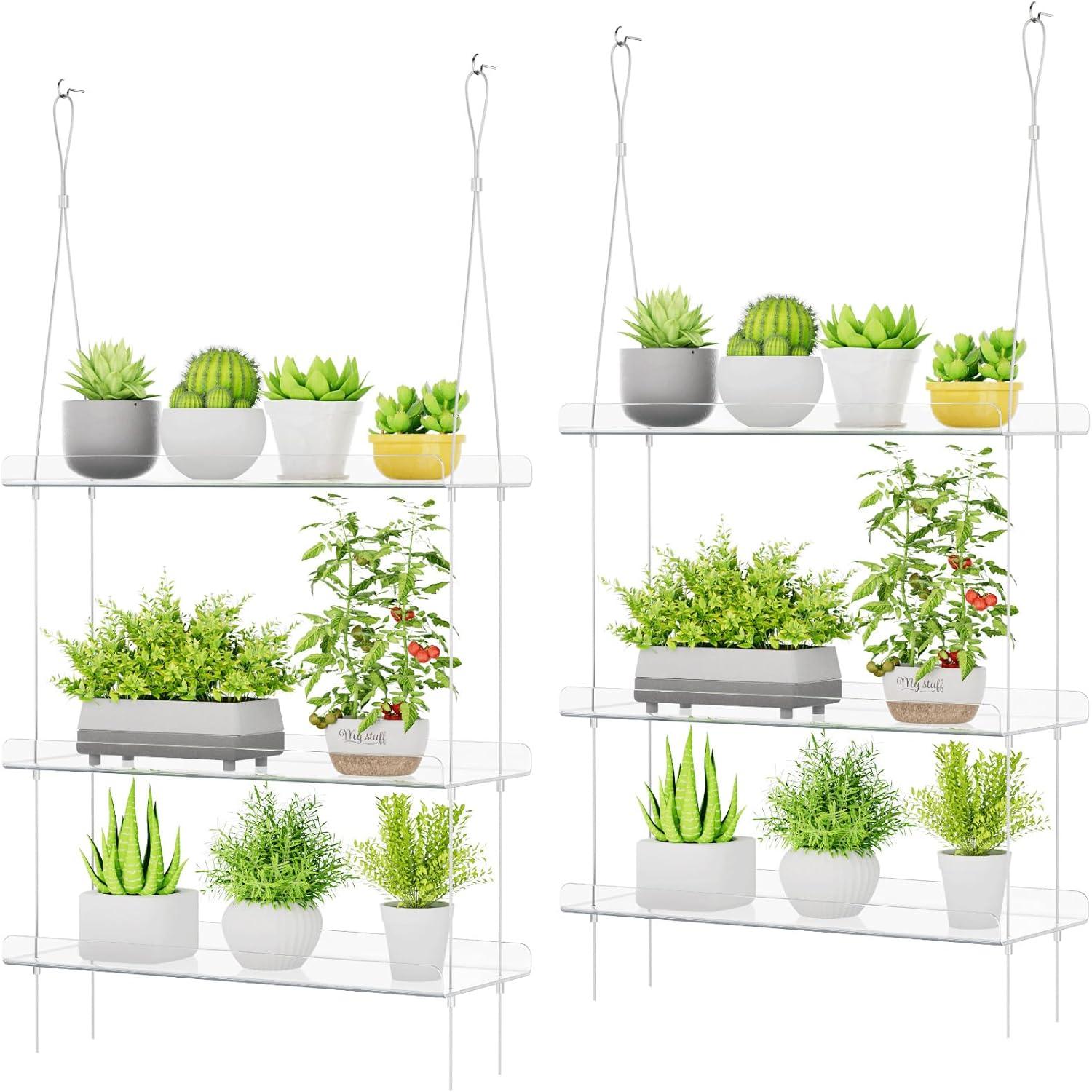 Lifewit 3-Tier Window Plant Shelves 15 inch, Acrylic Adjustable Hanging Floating Shelf, Window Sill Extender for Indoor Succulent Plants, Micro Greens, Seed Starter Pots, Herb Planters(2)