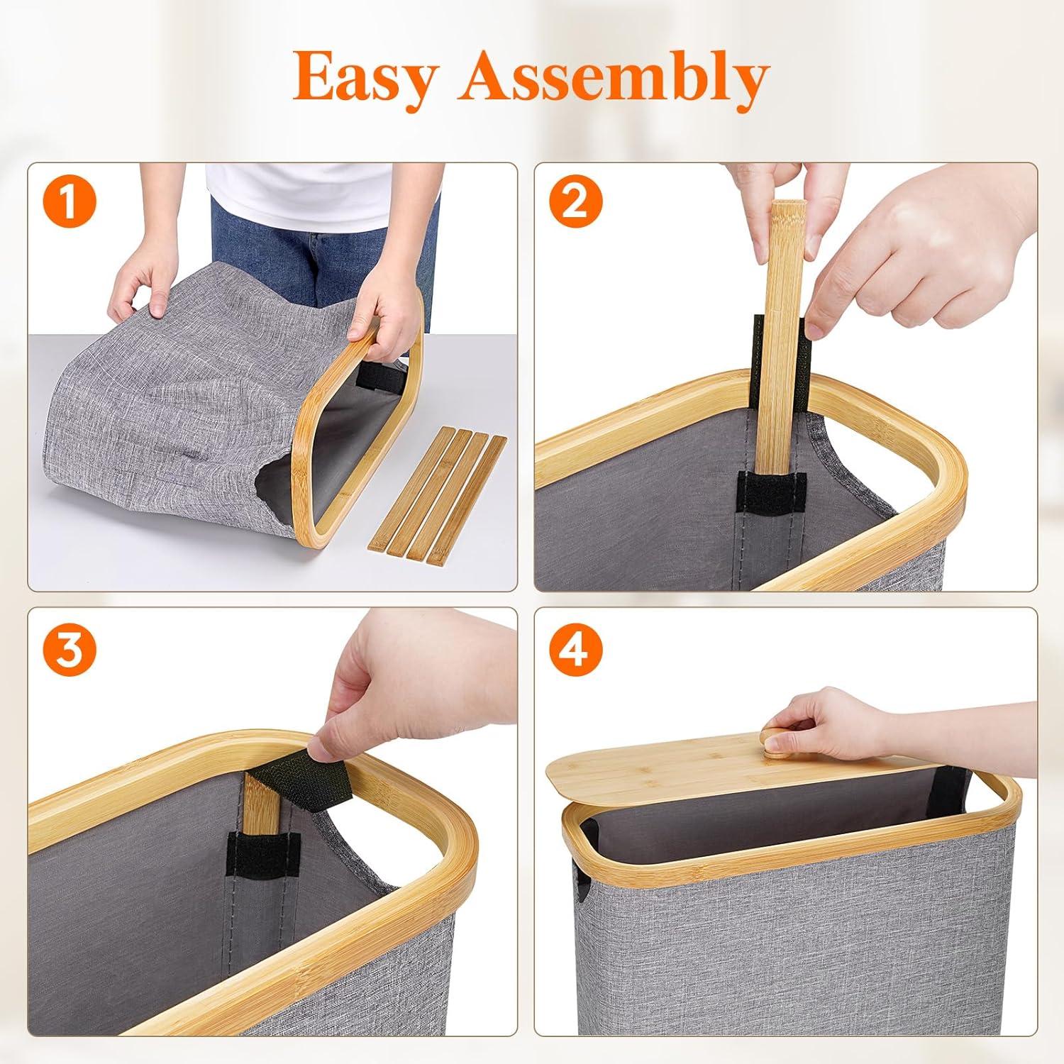 Stable Bamboo Support Rods: Designed with 4 detachable support rods, the toilet paper basket can stand up straight. The bamboo support rods can prevent the storage bin from easily deforming, making it more sturdy and reliable
