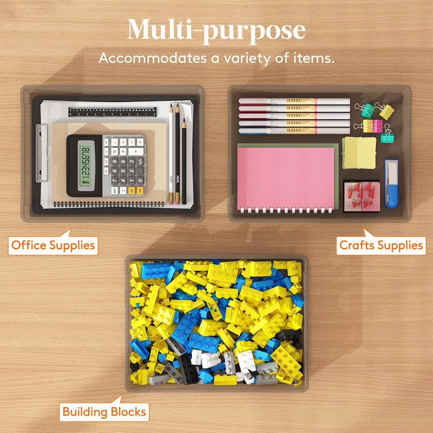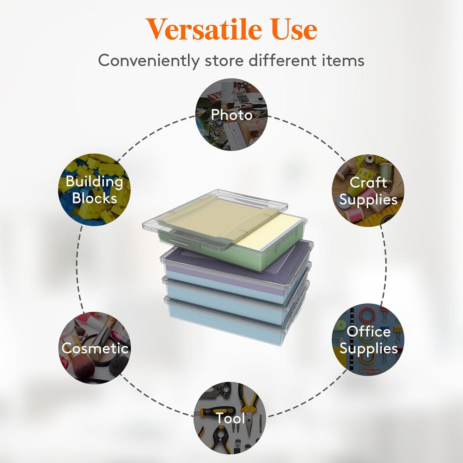 Multi-Purpose: These storage boxes are perfect for organizing items in your home, office, or school. They can hold 8.5 x 11 inches letters, folders, clipboards, documents, and other office supplies. They can also be used to store crafts such as photos, stamps, markers, scissors, and notebooks, making them ideal for school supplies or travel use.