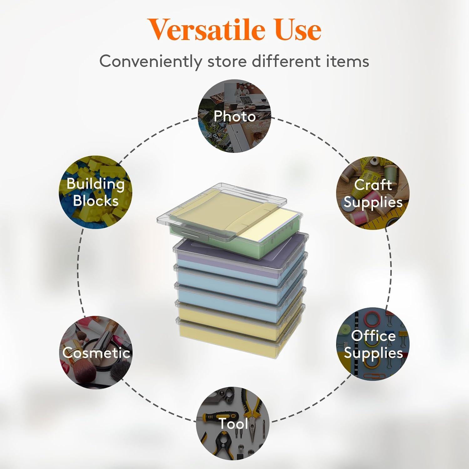 Snap-tight Latches: The plastic storage containers with lids feature a snap-lock design that keeps the latch securely locked, preventing items from being lost or scattered.