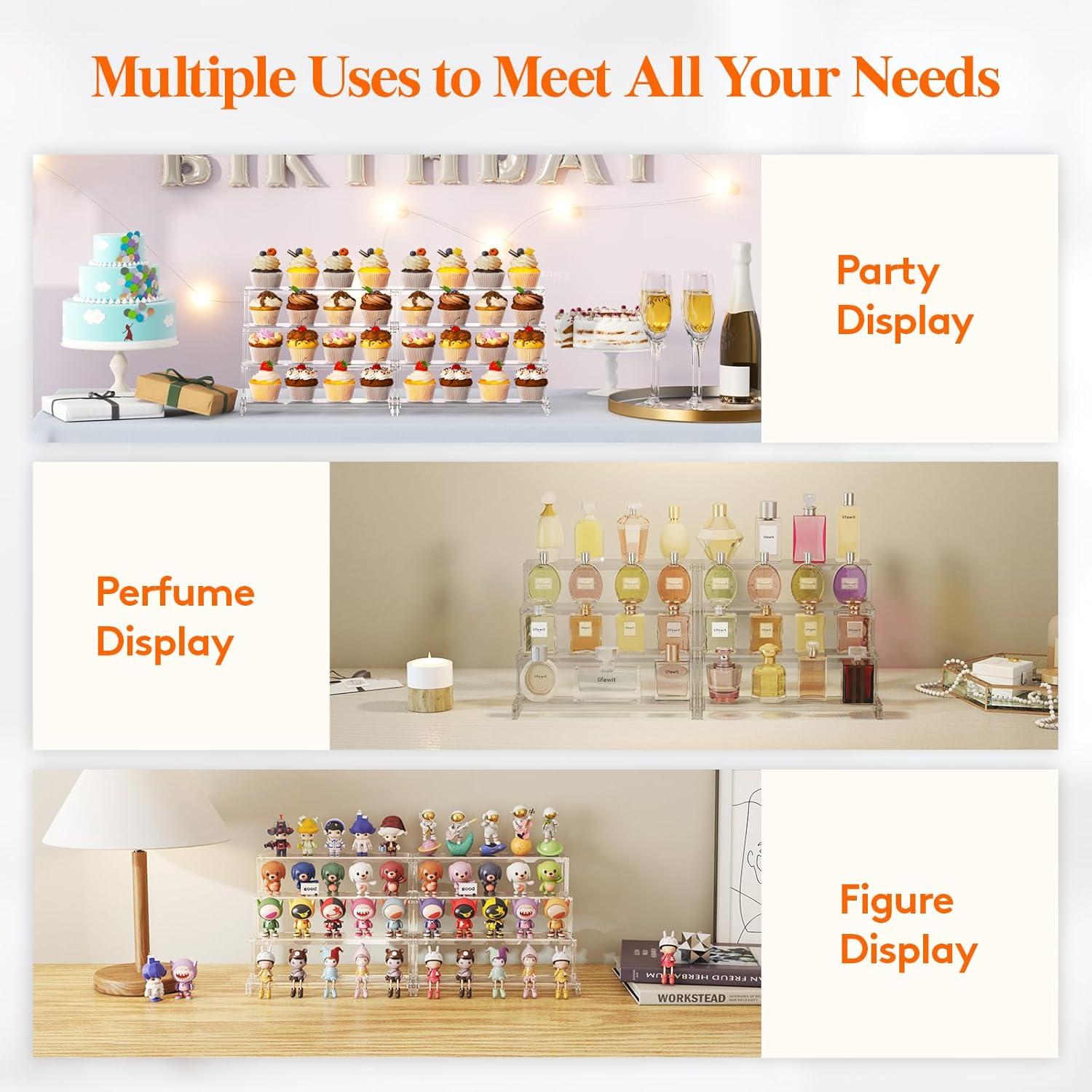 Get up to 70% off on Lifewit 4 Tier Clear Display Riser Stand, Tool-free Assembly, Plastic Organizers for Figures, Cupcake, Perfume, Dessert, Desktop Display Stand for Organize and Decoration, 9 Inch, 1-Pack(12inch 1 pack) styles during our end-of-season clearance event.