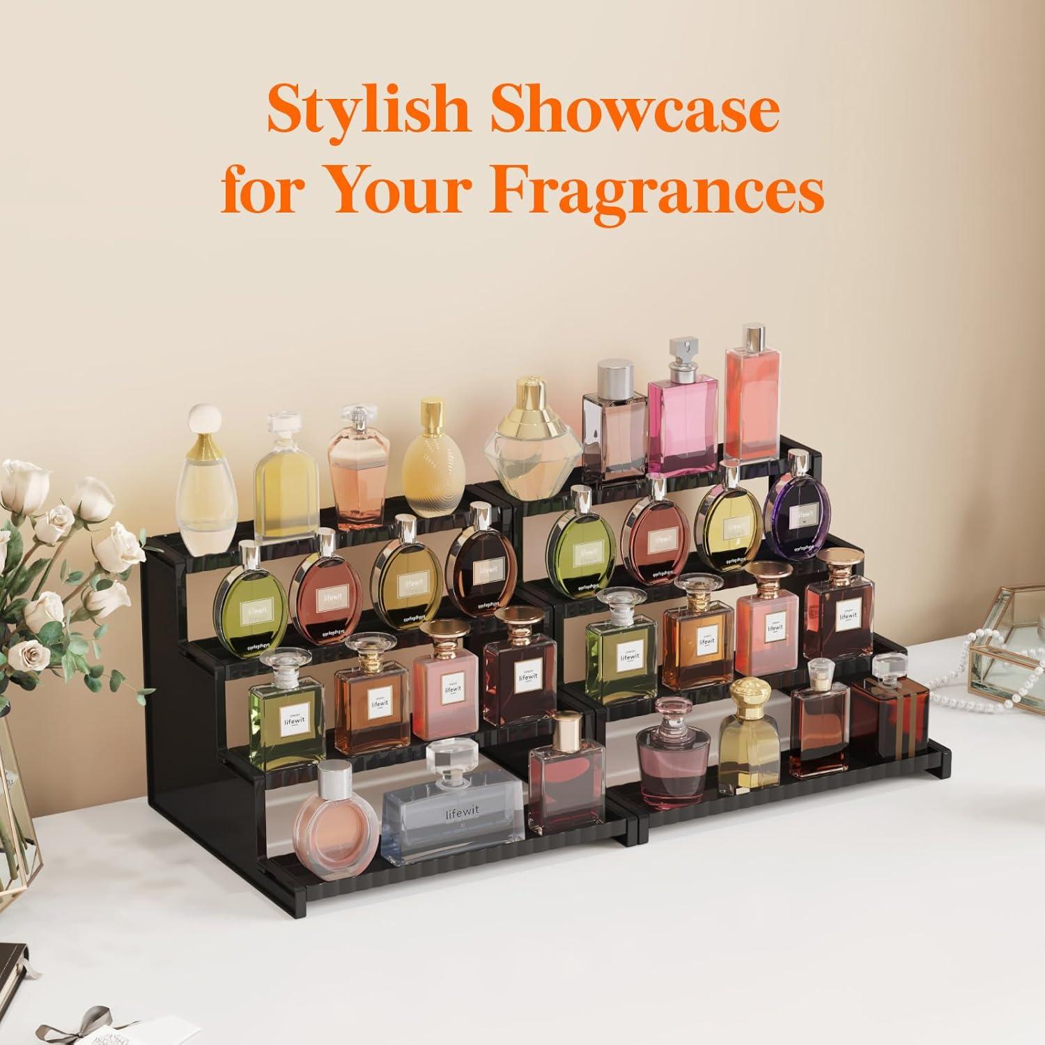 Versatile Storage: This perfume display can accommodate a variety of items such as cosmetics, skincare products, sunglasses, nail polish, and even collectibles; It adapts to your diverse storage needs, making it a versatile addition to your vanity