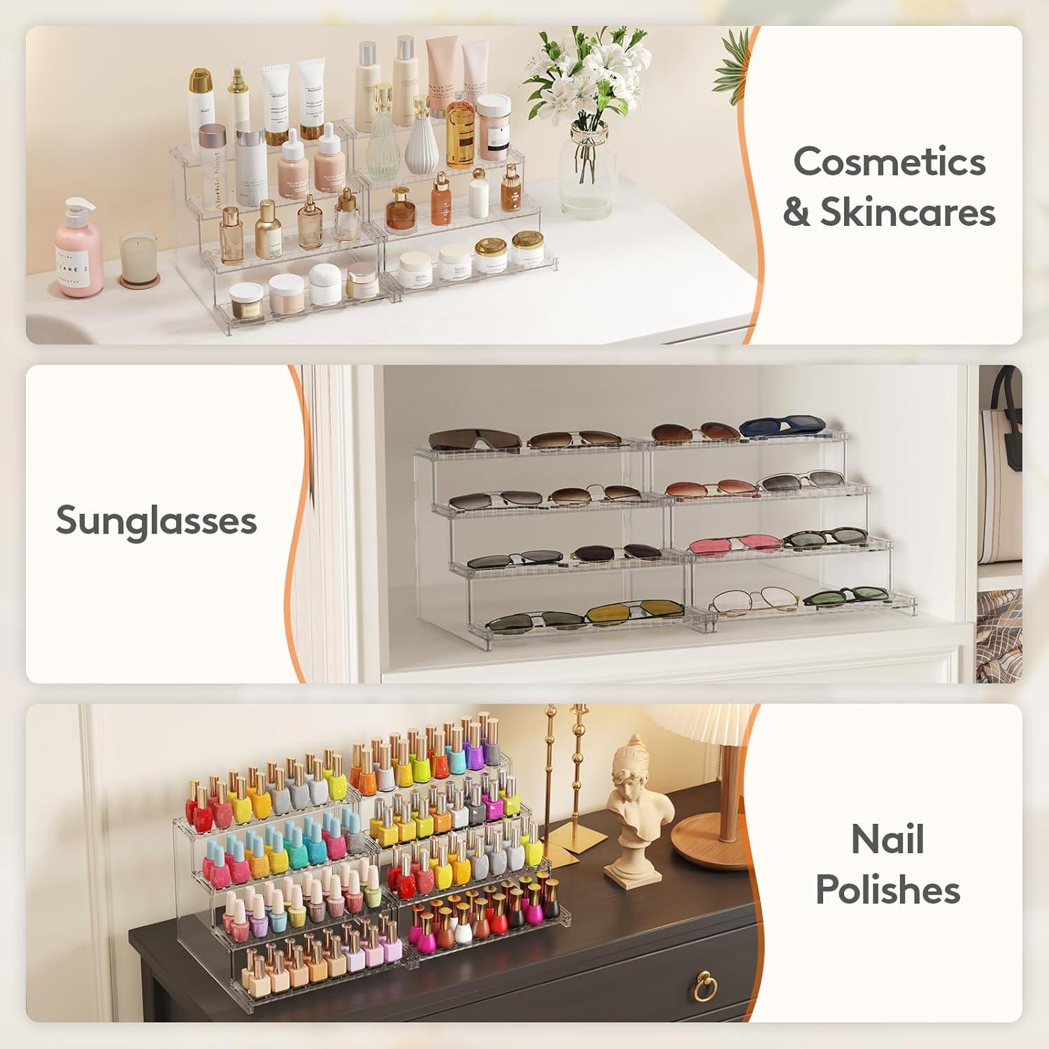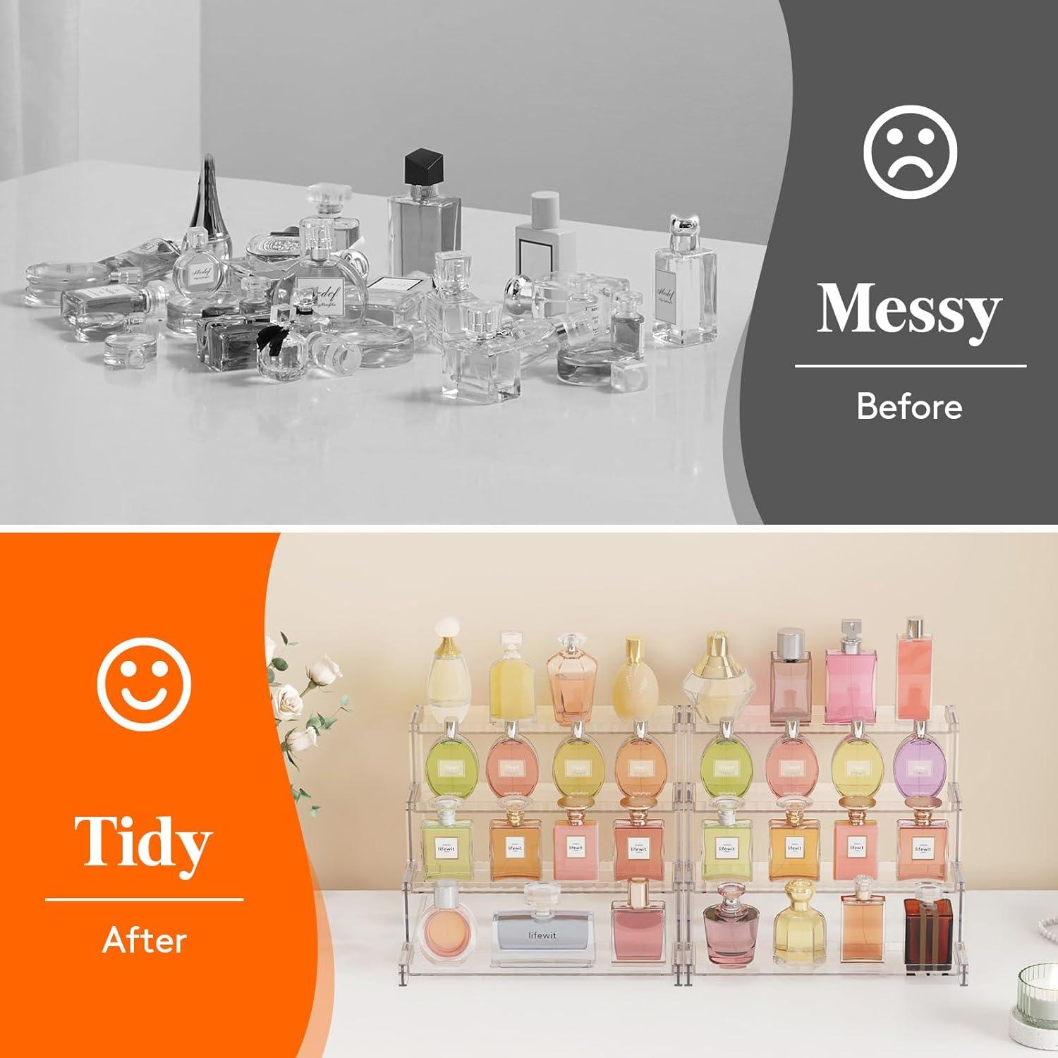 Versatile Storage: This perfume display can accommodate a variety of items such as cosmetics, skincare products, sunglasses, nail polish, and even collectibles; It adapts to your diverse storage needs, making it a versatile addition to your vanity