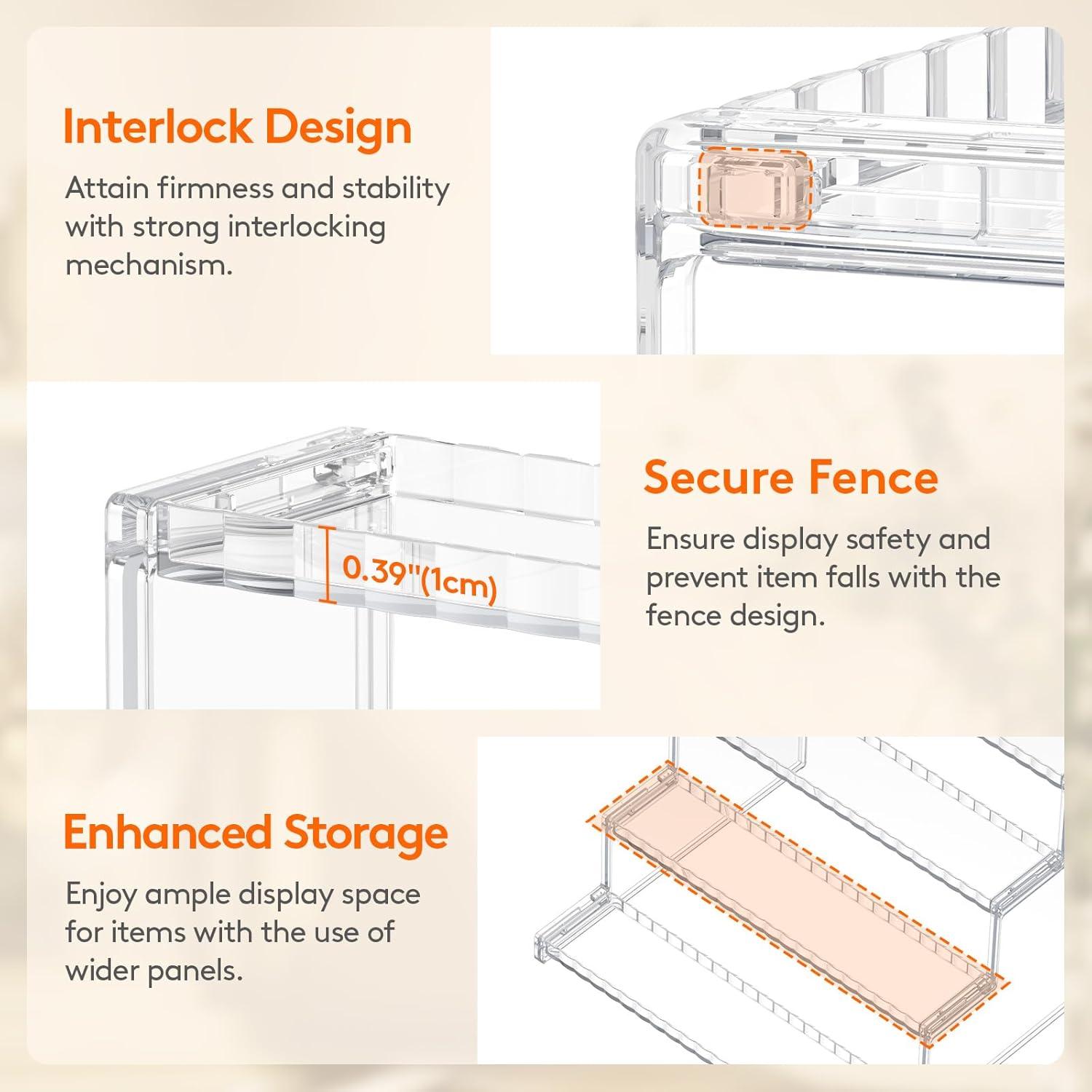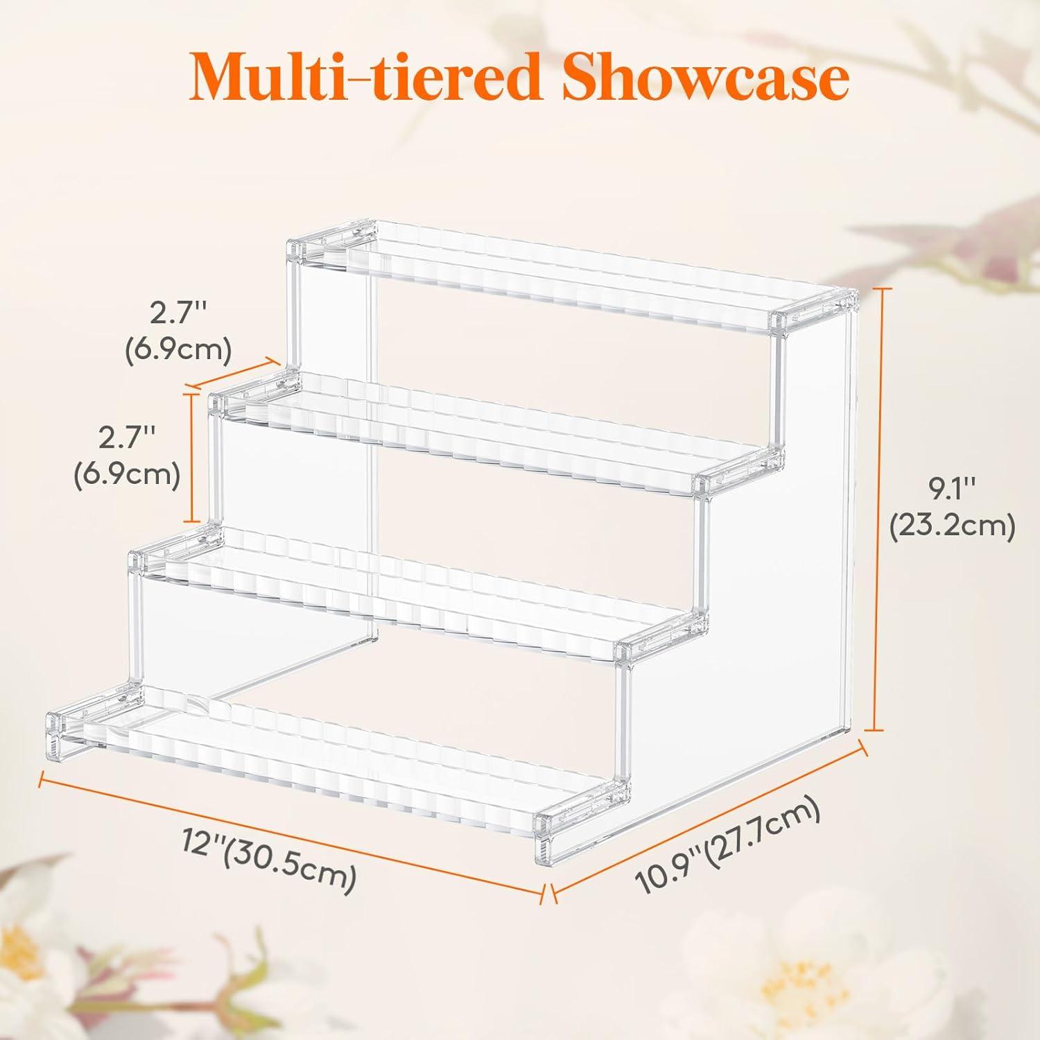 Lifewit 4 Tier Clear Display Riser Stand with Decorative Secure Fences, Tool-free Assembly, Plastic 12 Inch Perfume Organizer, Display for Figures, Cupcake, Dessert, 1-pack(Clear)