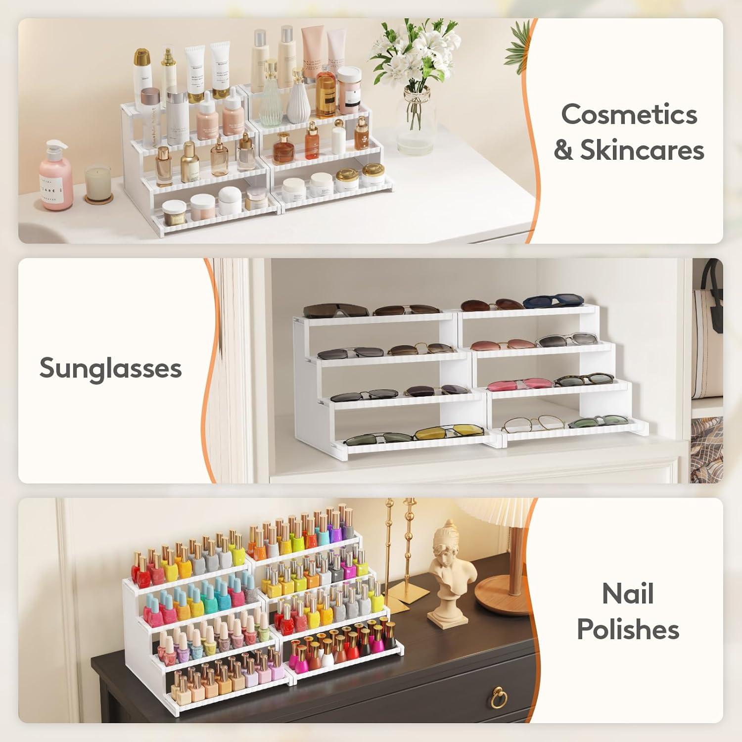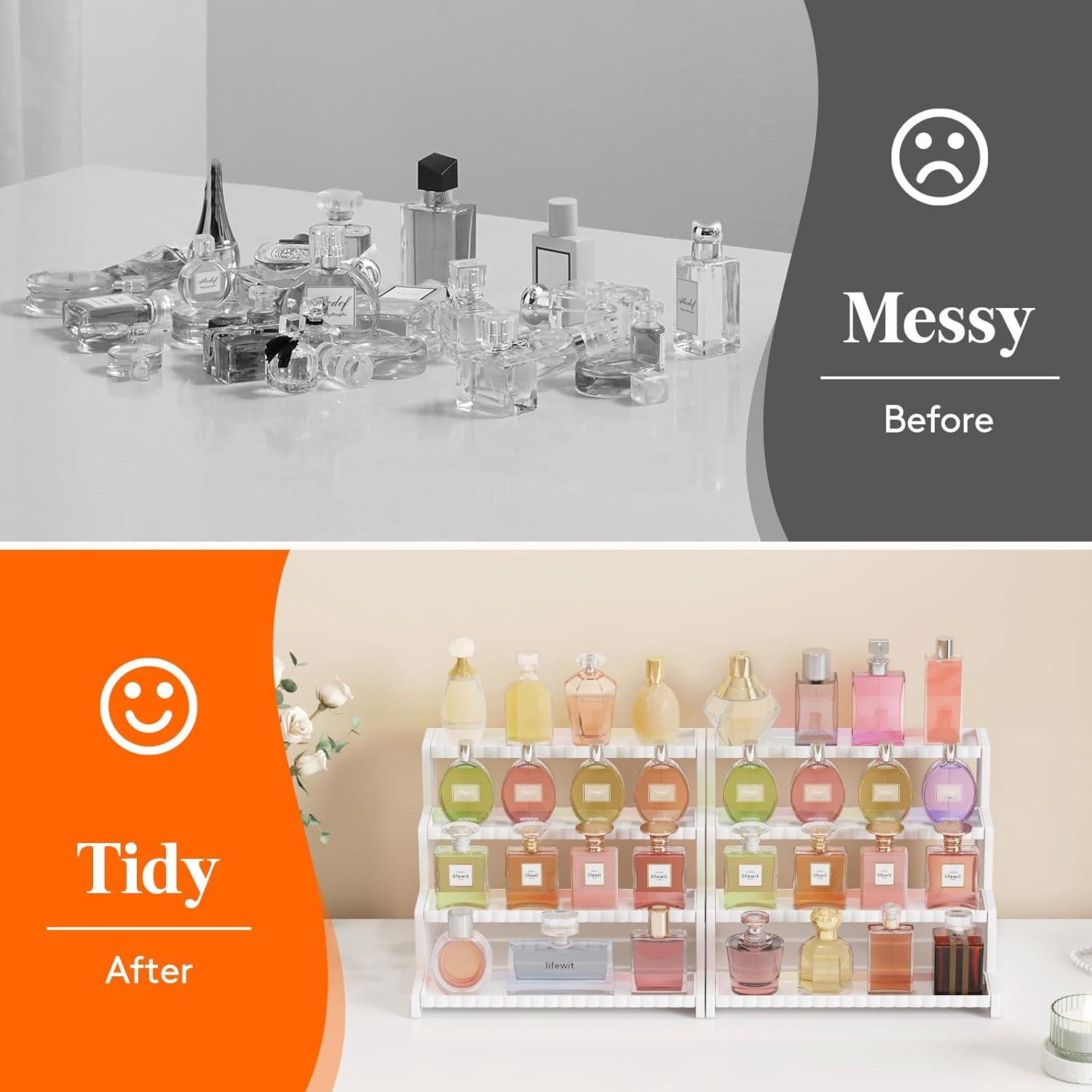 Versatile Storage: This perfume display can accommodate a variety of items such as cosmetics, skincare products, sunglasses, nail polish, and even collectibles; It adapts to your diverse storage needs, making it a versatile addition to your vanity