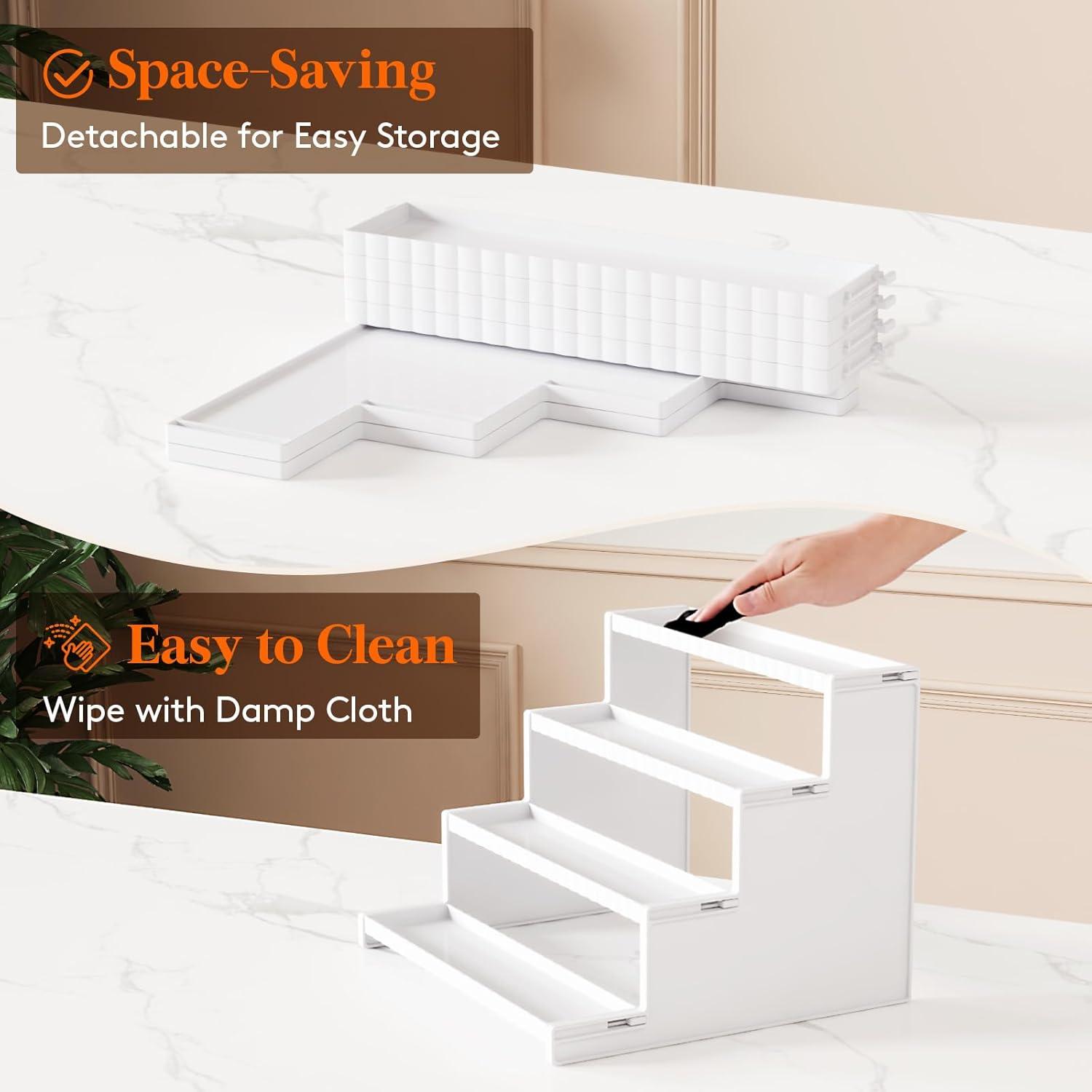 Lifewit 4 Tier Clear Display Riser Stand with Decorative Secure Fences, Tool-free Assembly, Plastic 12 Inch Perfume Organizer, Display for Figures, Cupcake, Dessert, 1-pack(White)