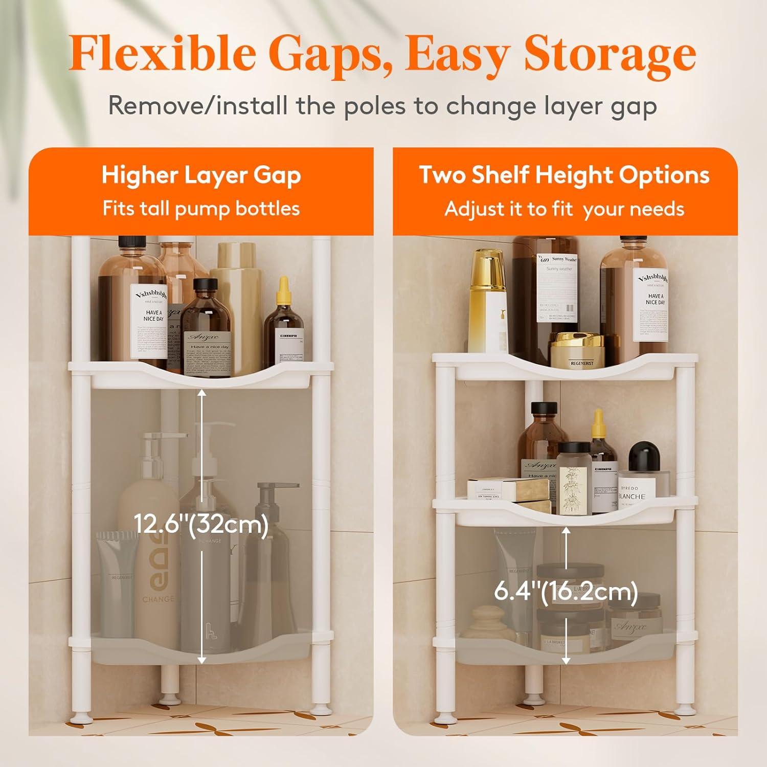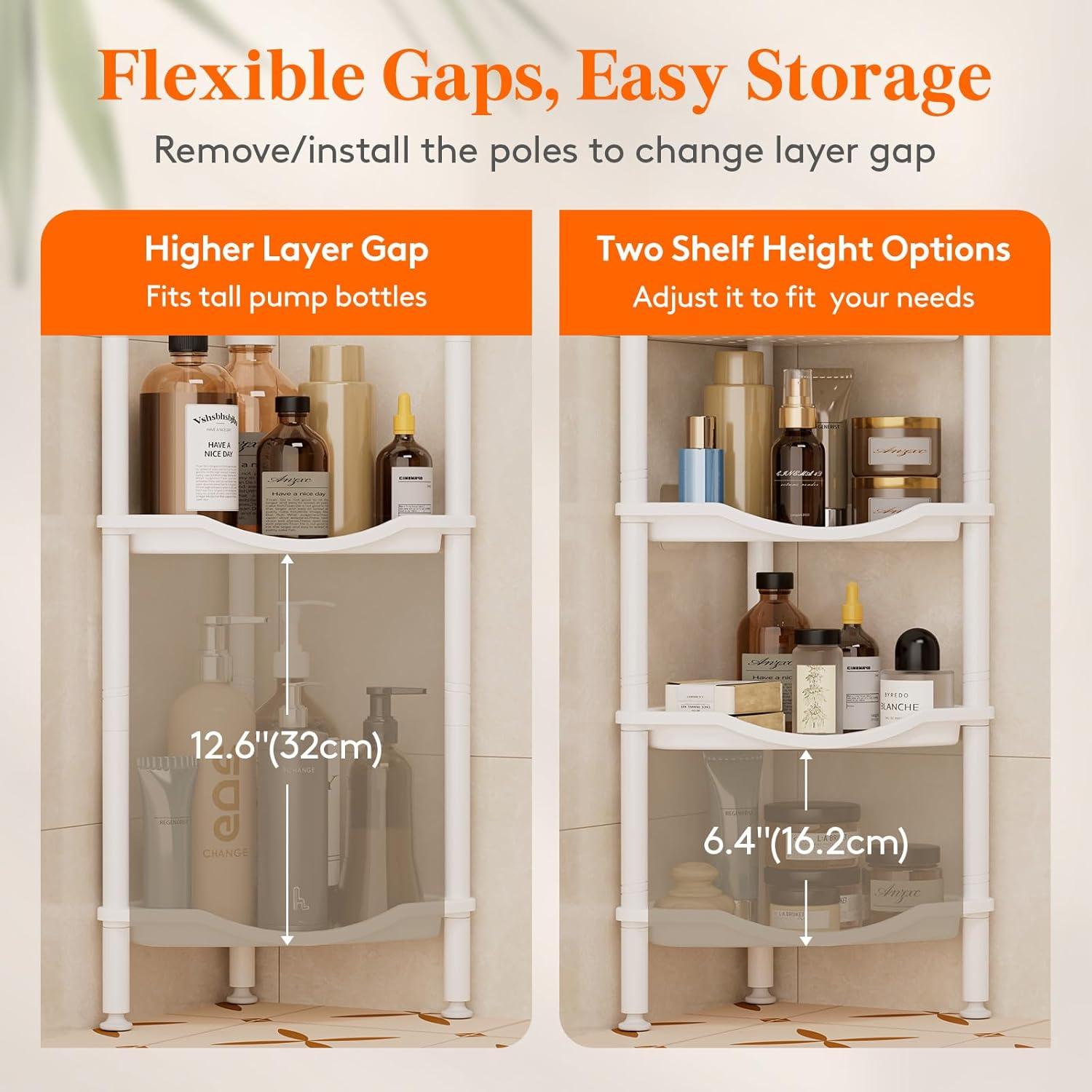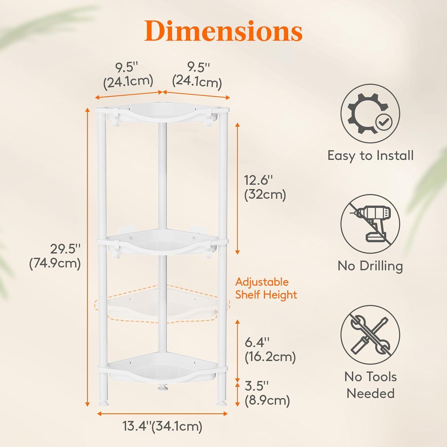 Easy Drainage: Each shelf has multiple drainage holes to prevent water buildup, keeping your bath items dry and clean, and preventing odors or rust