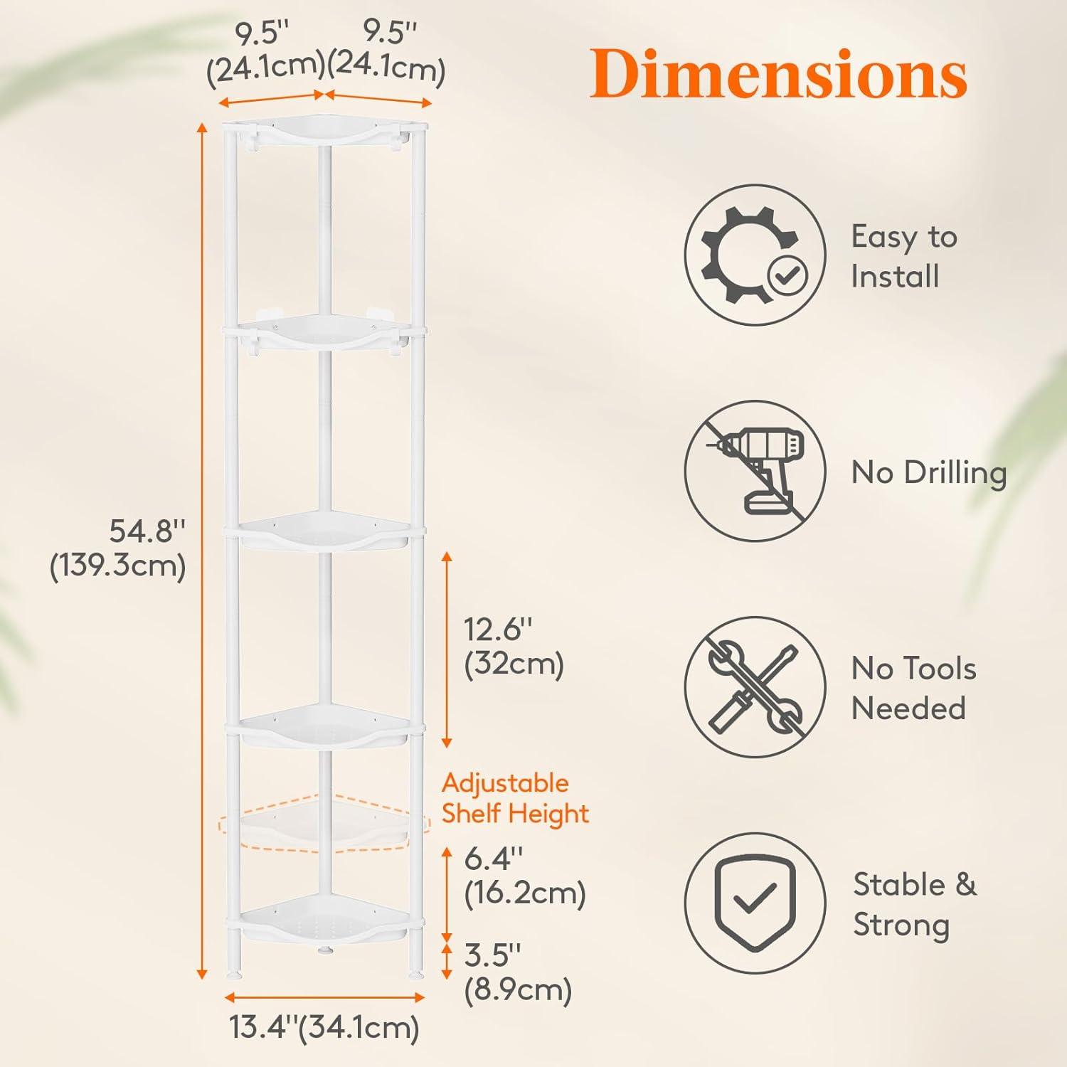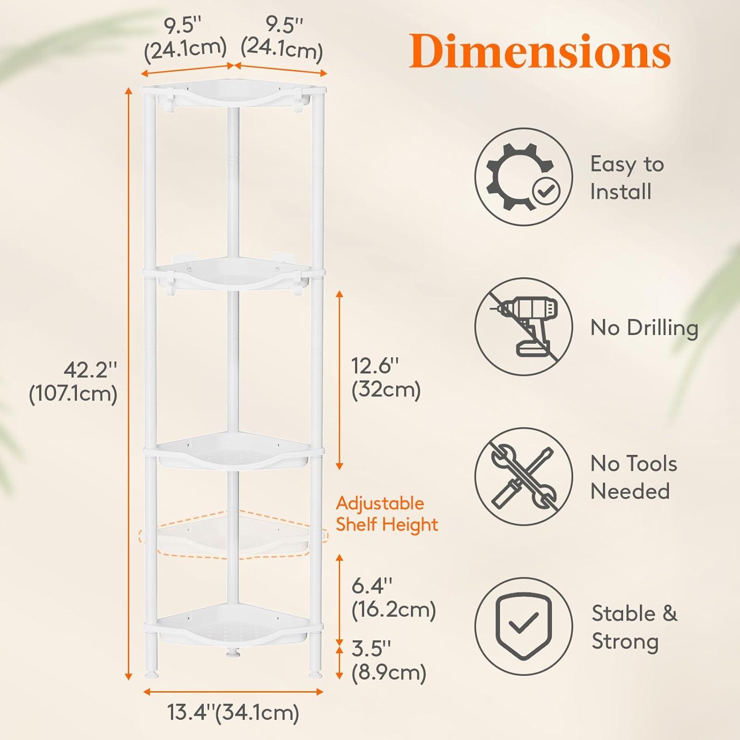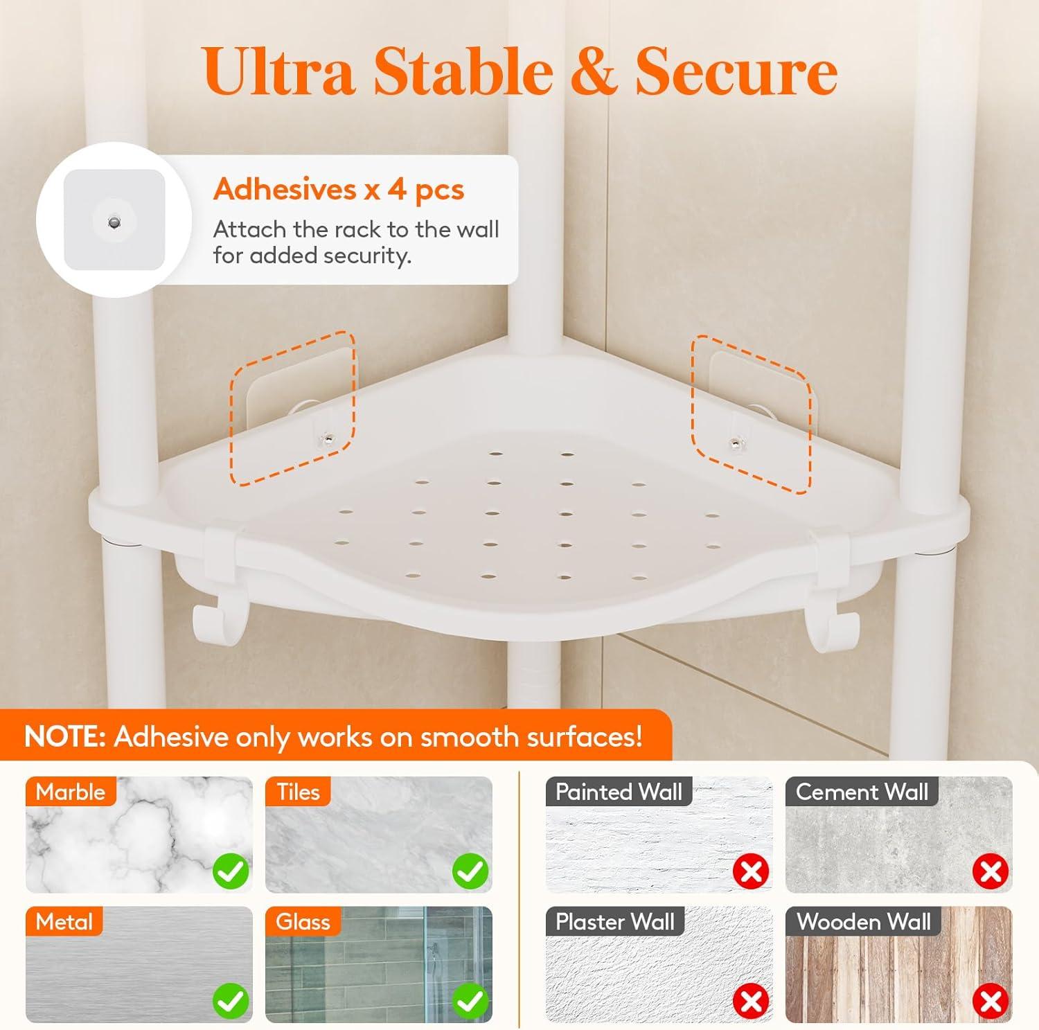 Stable & Secure: Adjustable feet keep the shower stand stable even on sloped bathroom floors; includes anti-tipping adhesive to anchor it in corners for added safety; note: adhesive works only on smooth surfaces—avoid painted or wooden walls