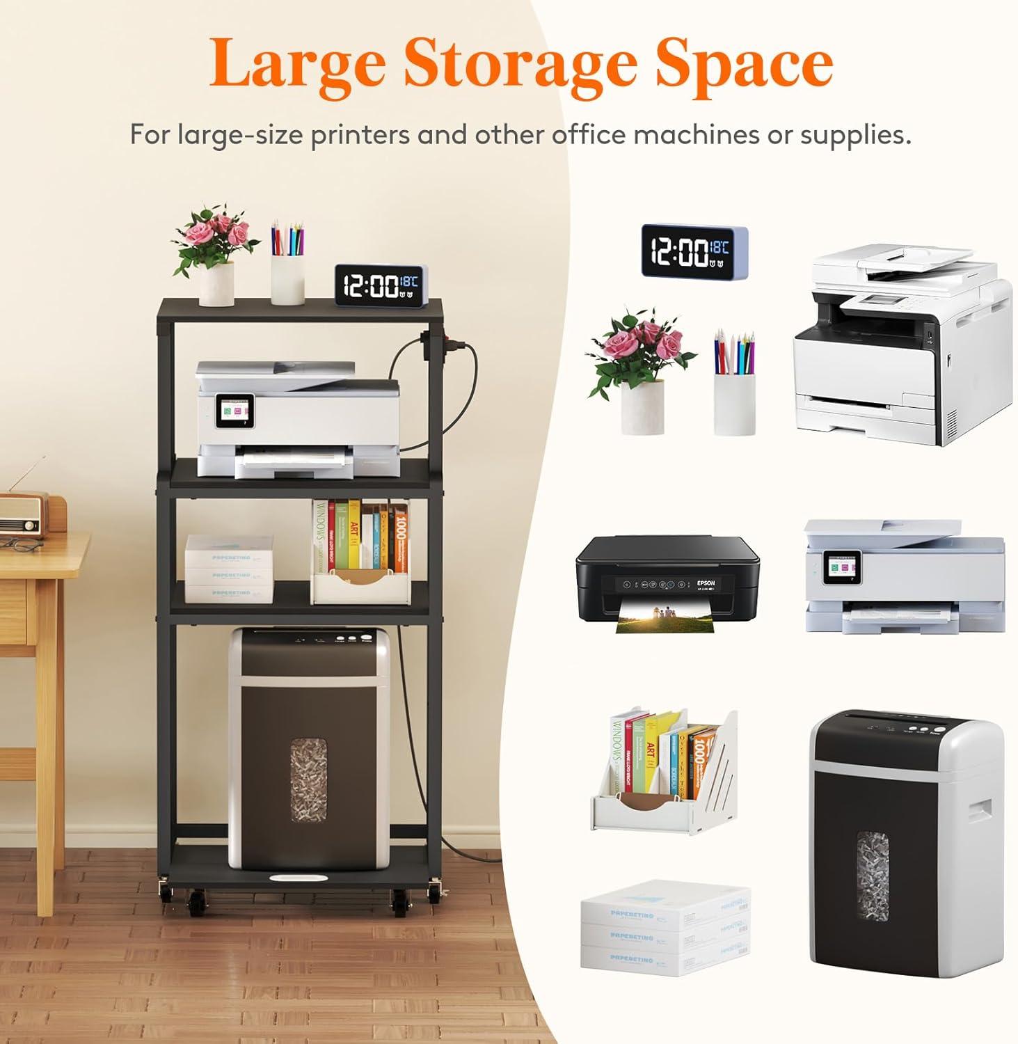 Home Office Space Saver: This four-tier printer stand, measuring 20.8 x 15.7 x 44.1 inches, maximizes storage while saving floor space. Ideal for small home offices, it stores printers, scanners, shredders, office supplies, and crafting equipment like heat presses, sewing machines, and paper cutters. Plus, it holds books, stationery, and printing paper, keeping everything accessible.