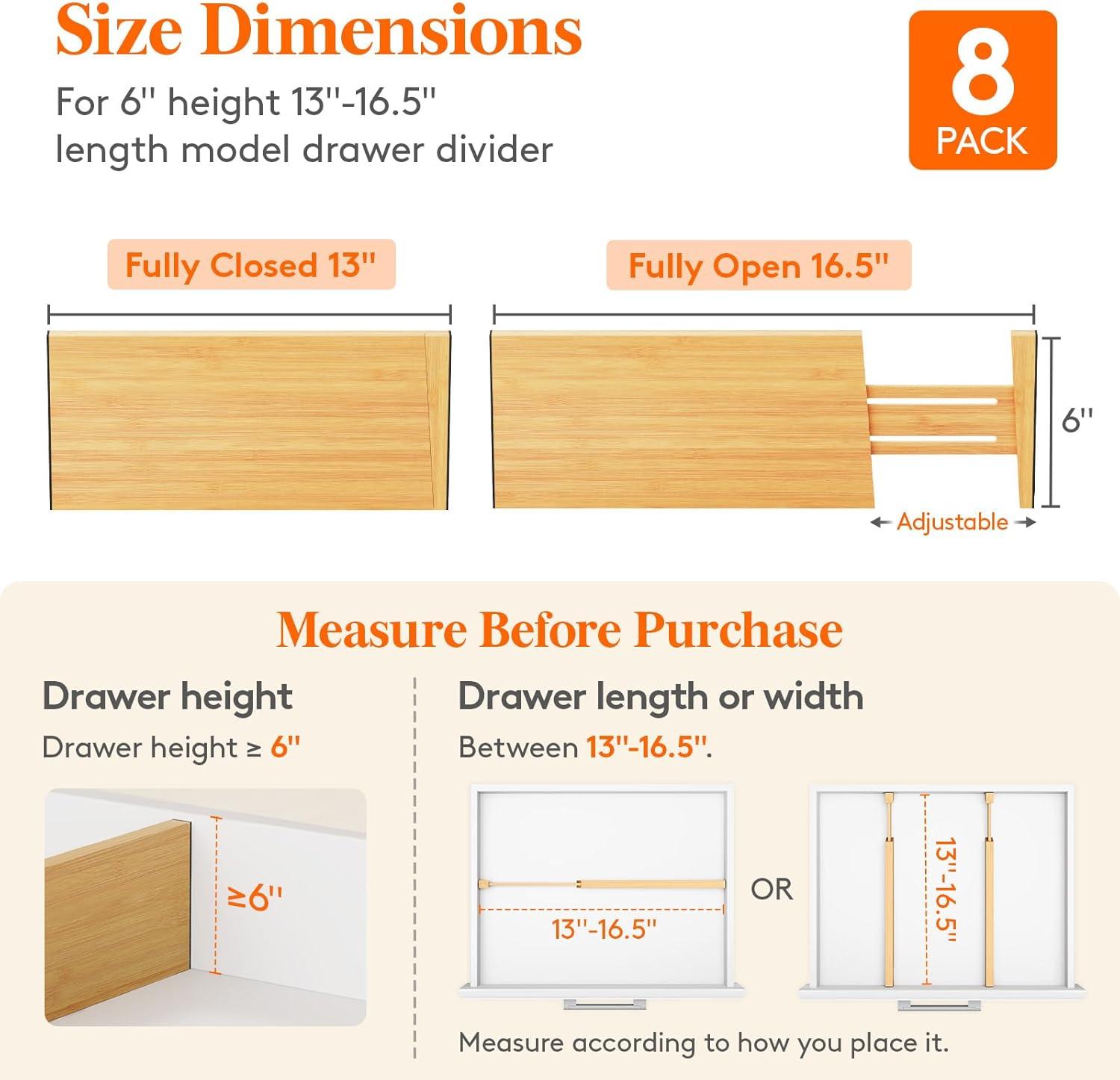 Lifewit 6 Pack 6" Deep Bamboo Drawer Dividers, 13-16.5" Expandable Drawer Organisers for Clothes, Adjustable Dresser Drawer Divider, Clothing Drawers Separators for Dresser, Bedroom, Bathroom, Office(8)