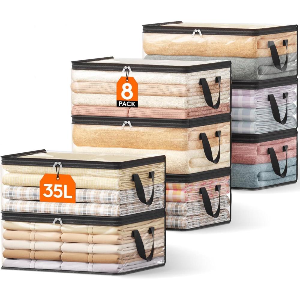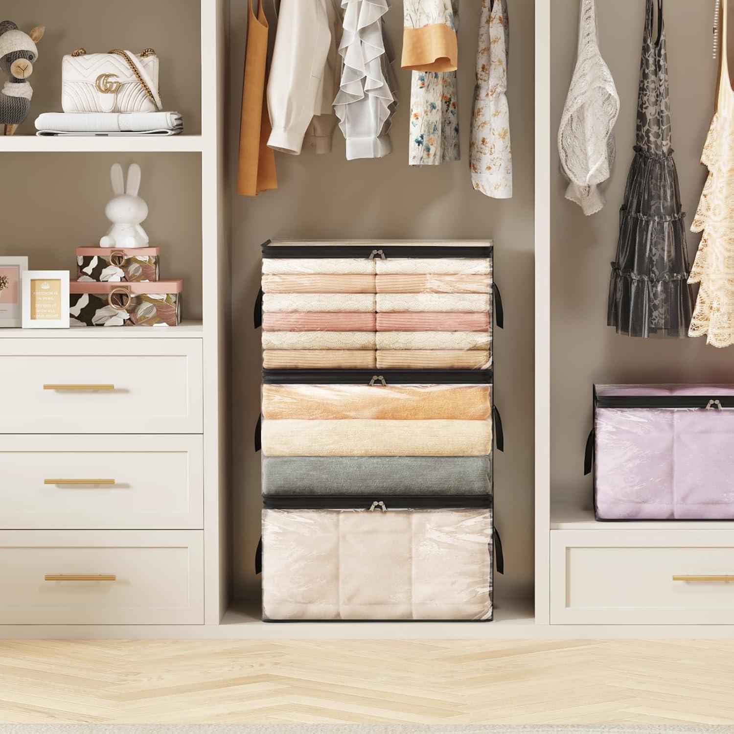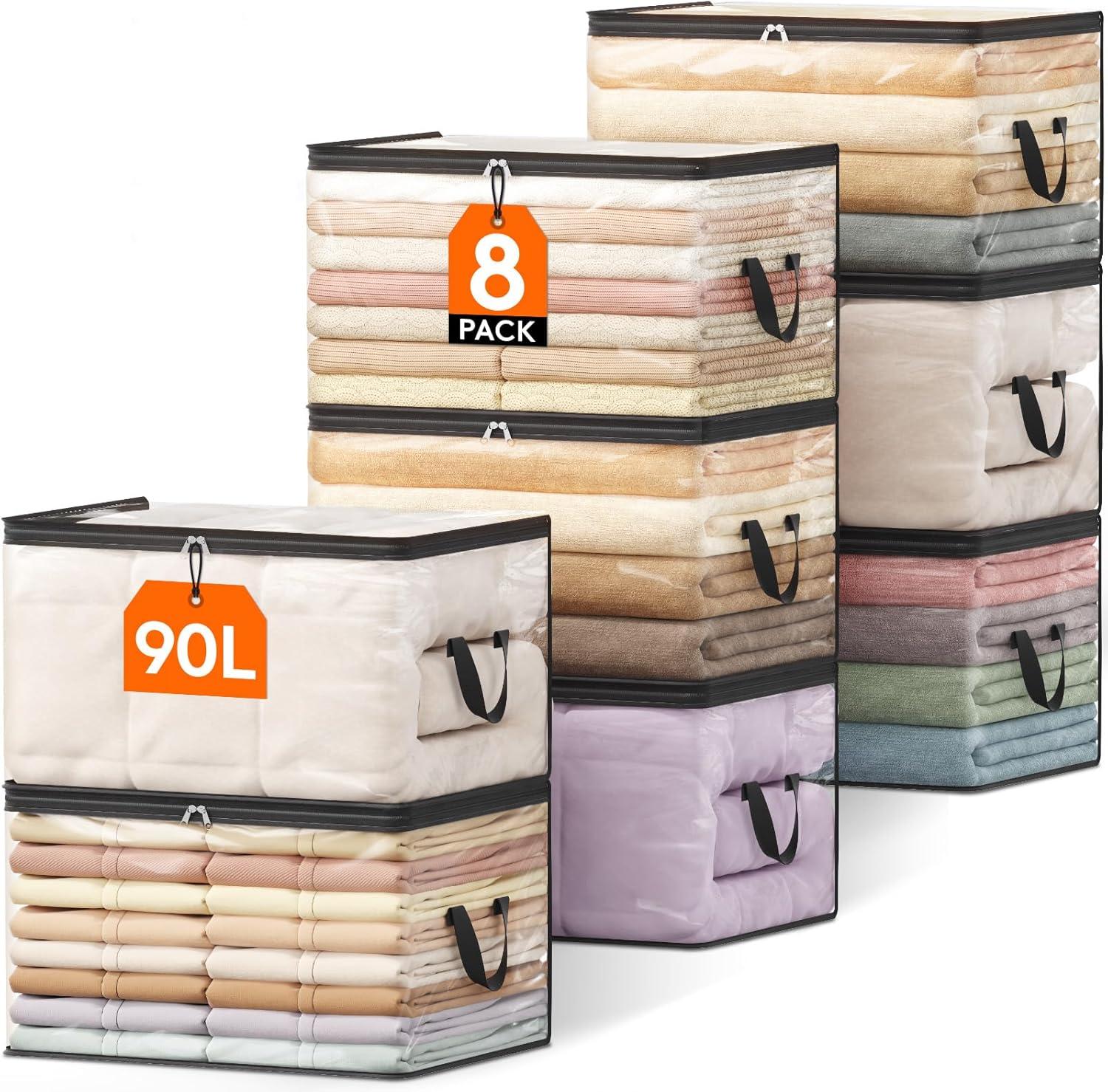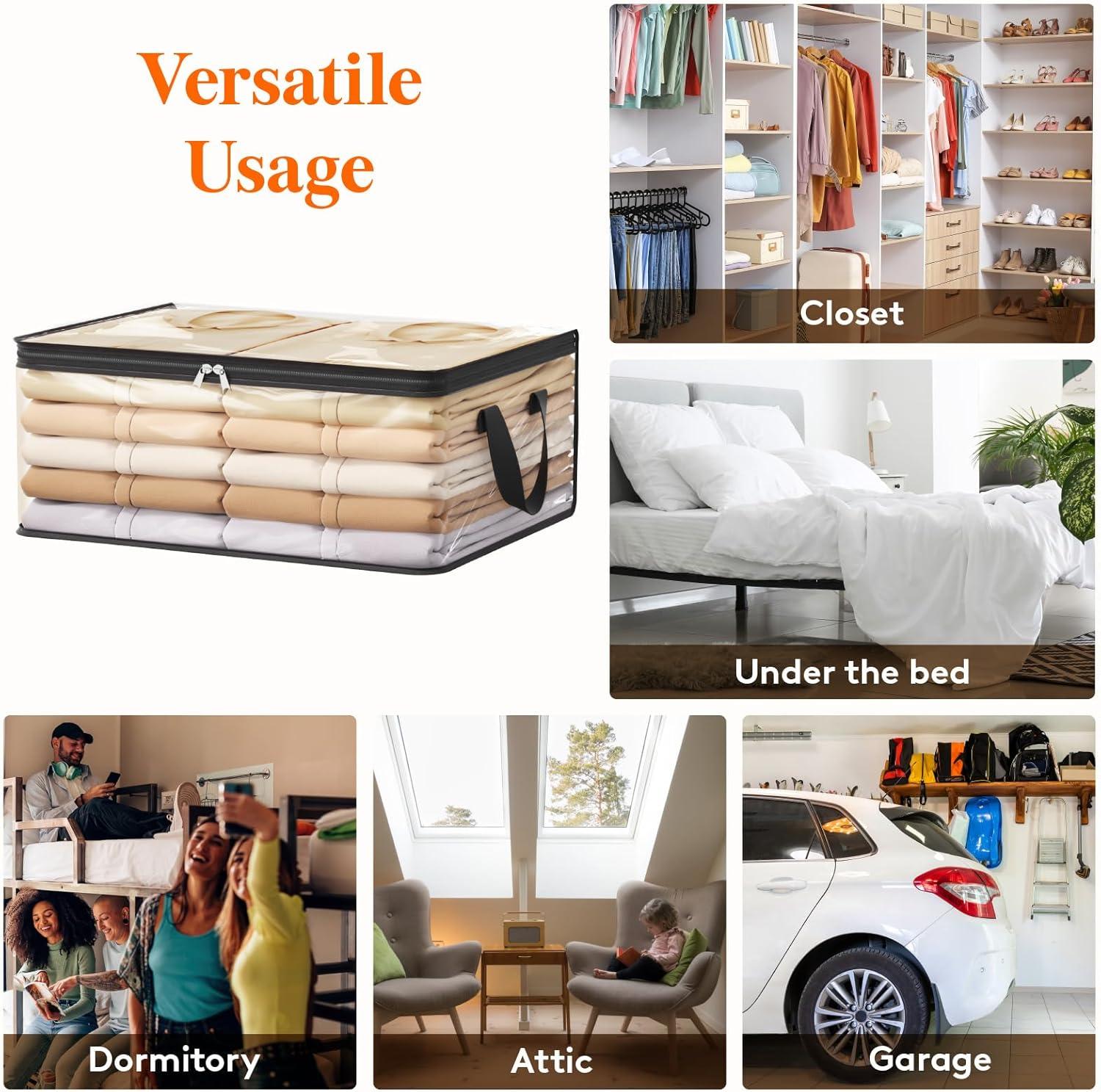 Generous Capacity: Each transparent storage bag measures 21.6″(55cm) x 13.8″(35cm) x 12.4″(31.5cm) and provides a spacious 60 L. Each storage bag can hold 1 double duvet, 4 large blankets, 10 sheets, approximately 50 T-shirts, 12 jackets, and 10 sweaters