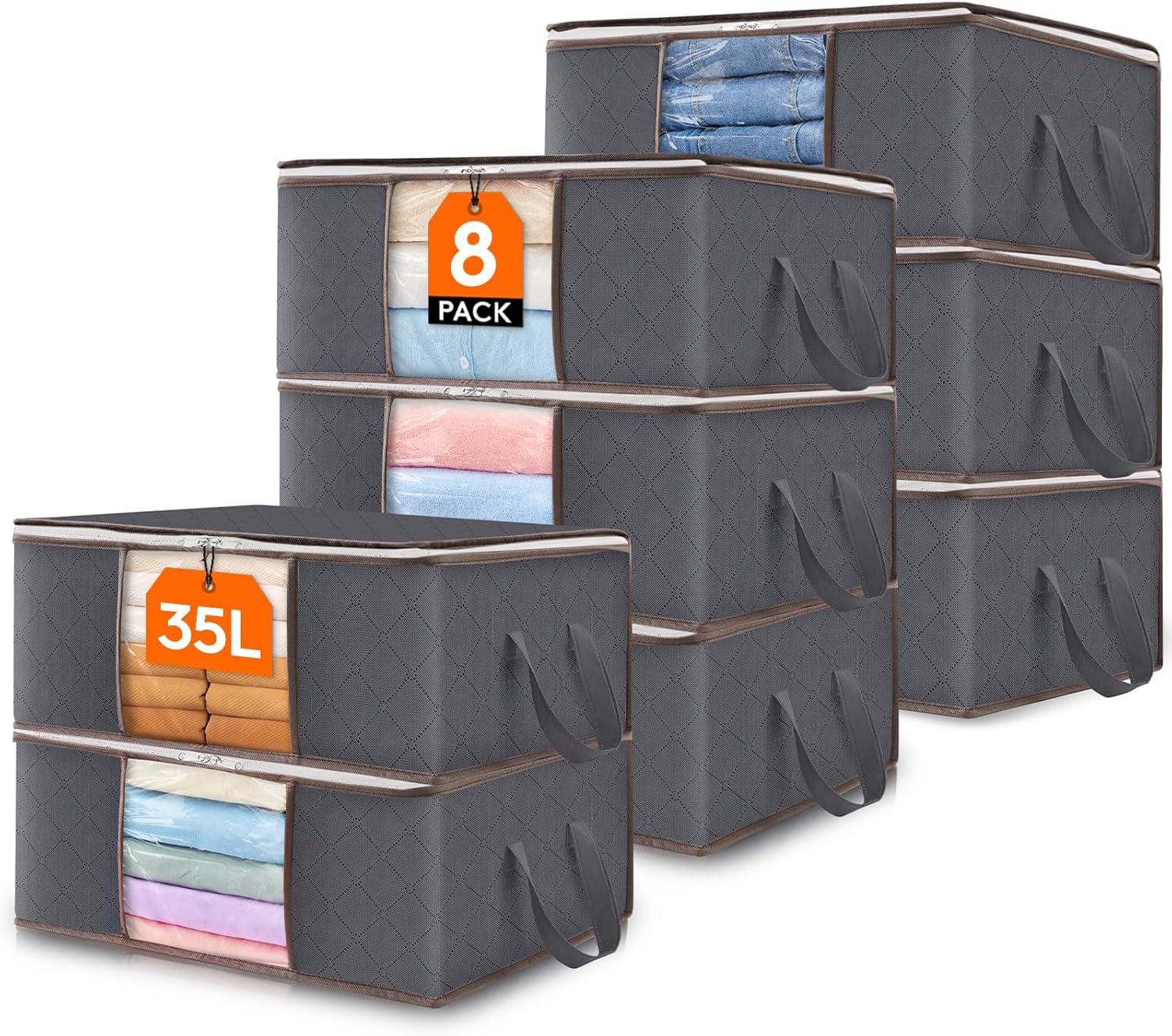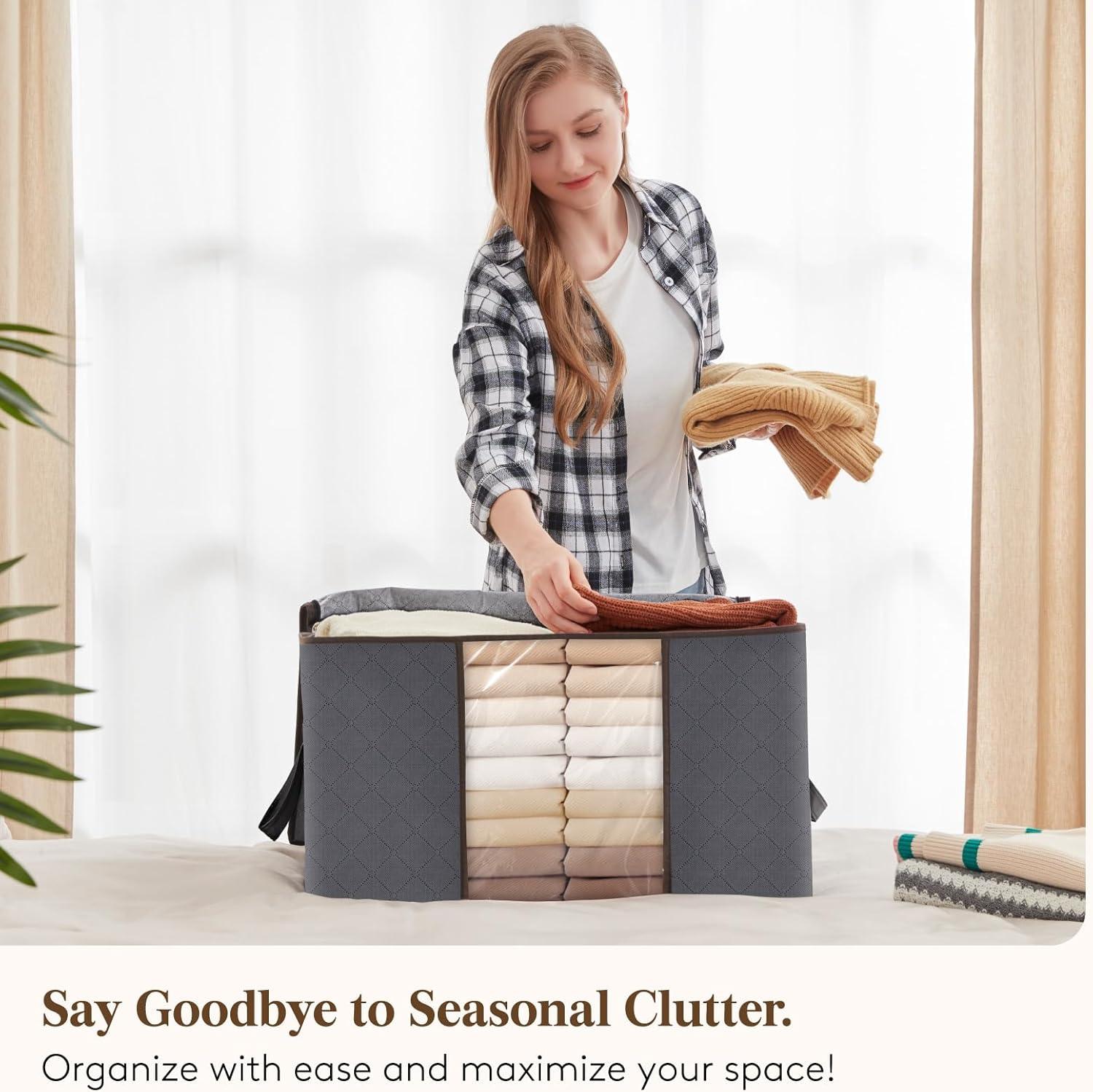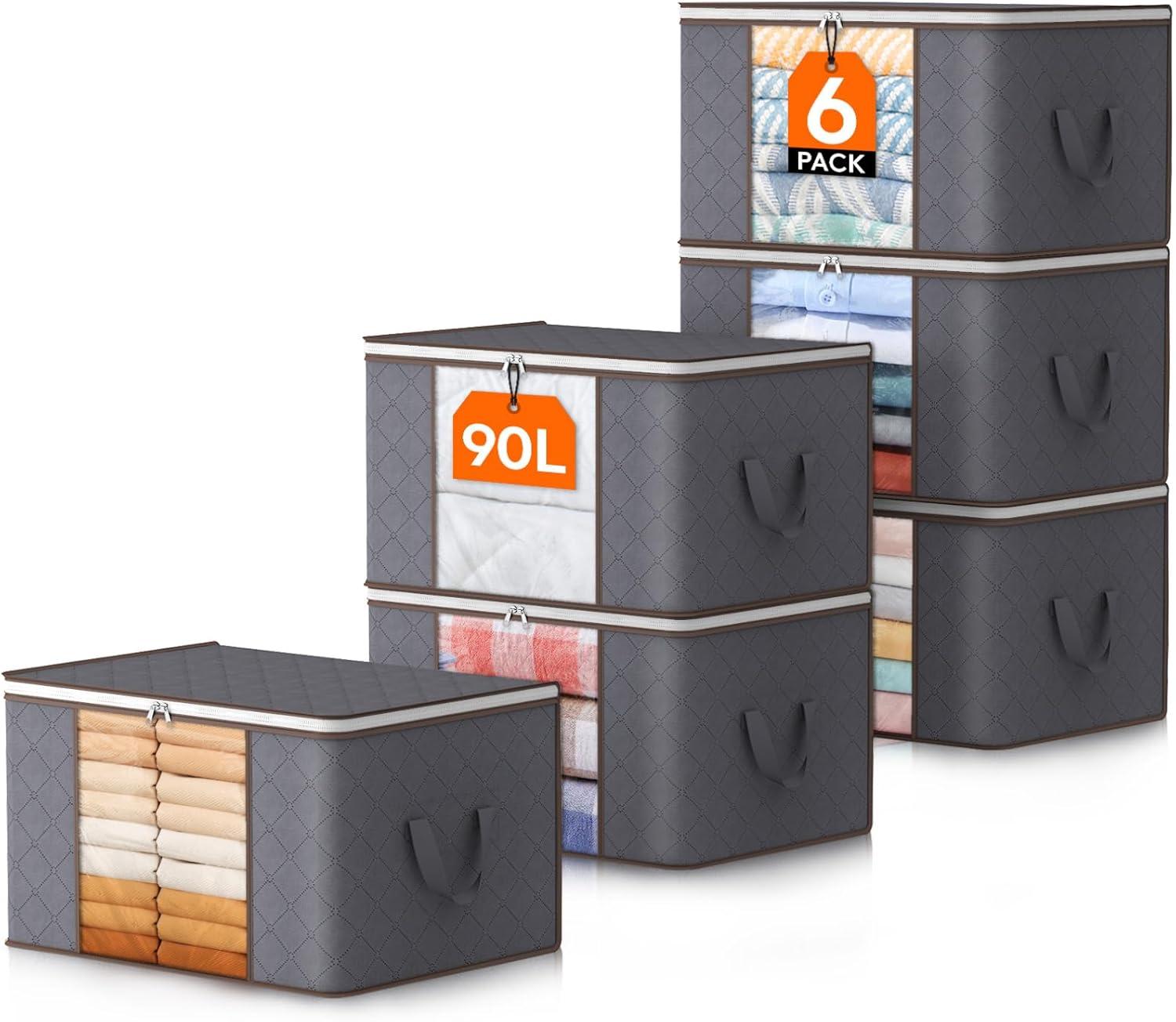 Lifewit 6 Pack Clothes Storage Bag, Foldable Storage Bin Closet Organizer with Reinforced Handle, Sturdy Fabric Blanket Storage with Clear Window, Storage Containers for Clothing, Bedding, Gray(Gray)