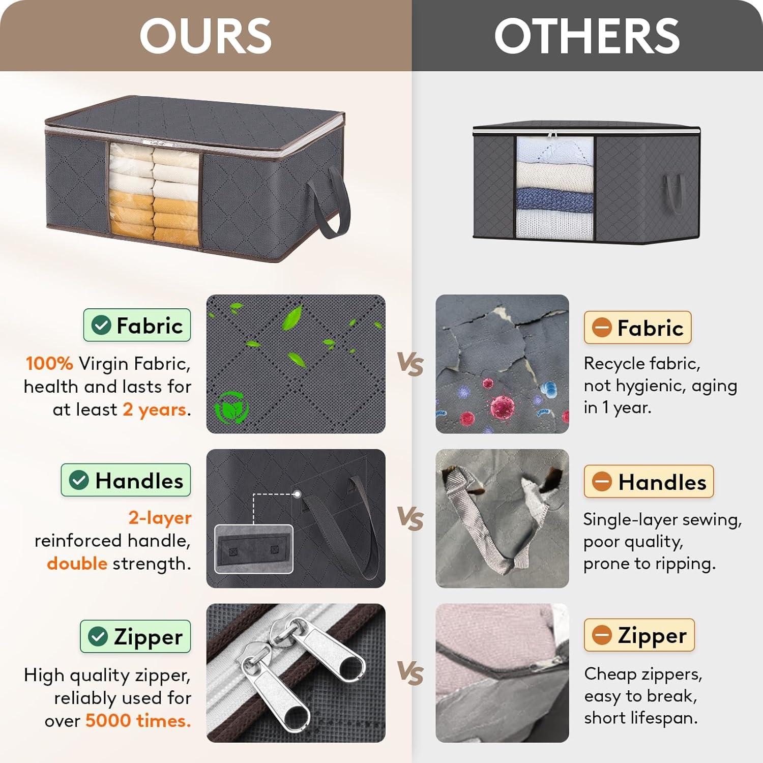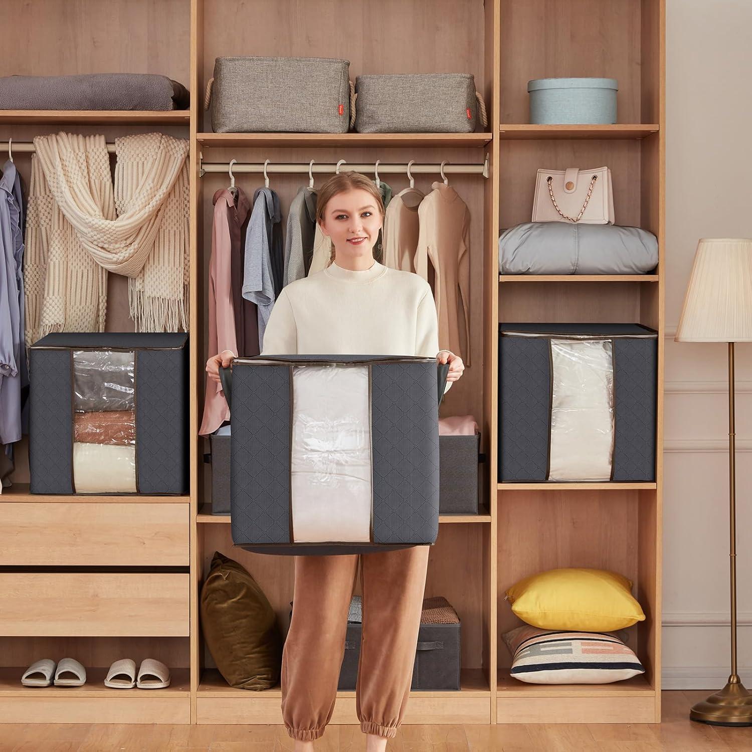 Lifewit 120L Extra Large Blanket Storage Bags, Foldable Comforter Storage with Reinforced Handles, Clothes Storage Containers for King Comforter, Bedding, Pillow, Sheet, Storage Bin with Lids 3 Pack(2)