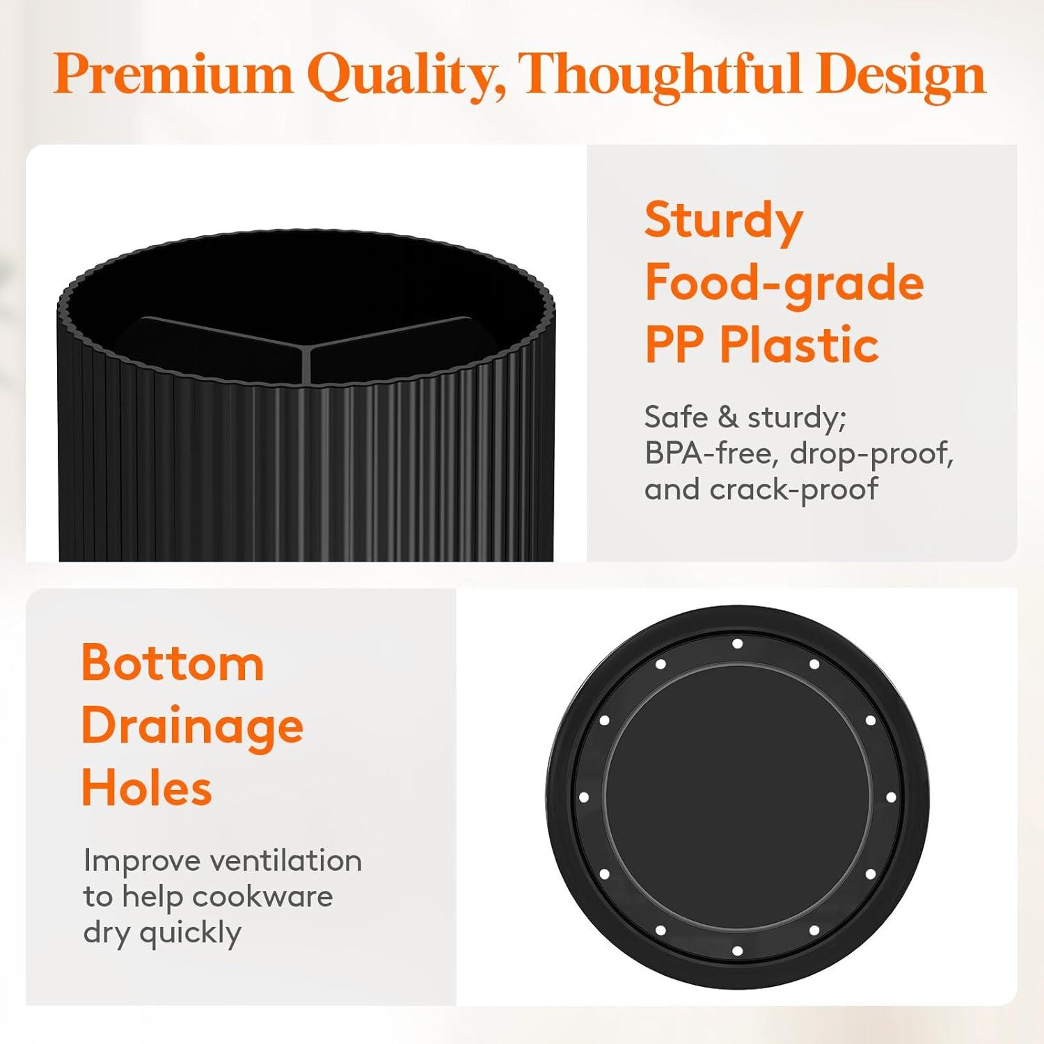 Quality Material and Thoughtful Gift: Crafted from thickened, food-safe PP material (BPA-Free), this cooking utensil holder is as safe as it is sturdy. Beyond its daily utility, it serves as a wonderful gift—a thoughtful gesture for a loved one that will be cherished in their kitchen every day