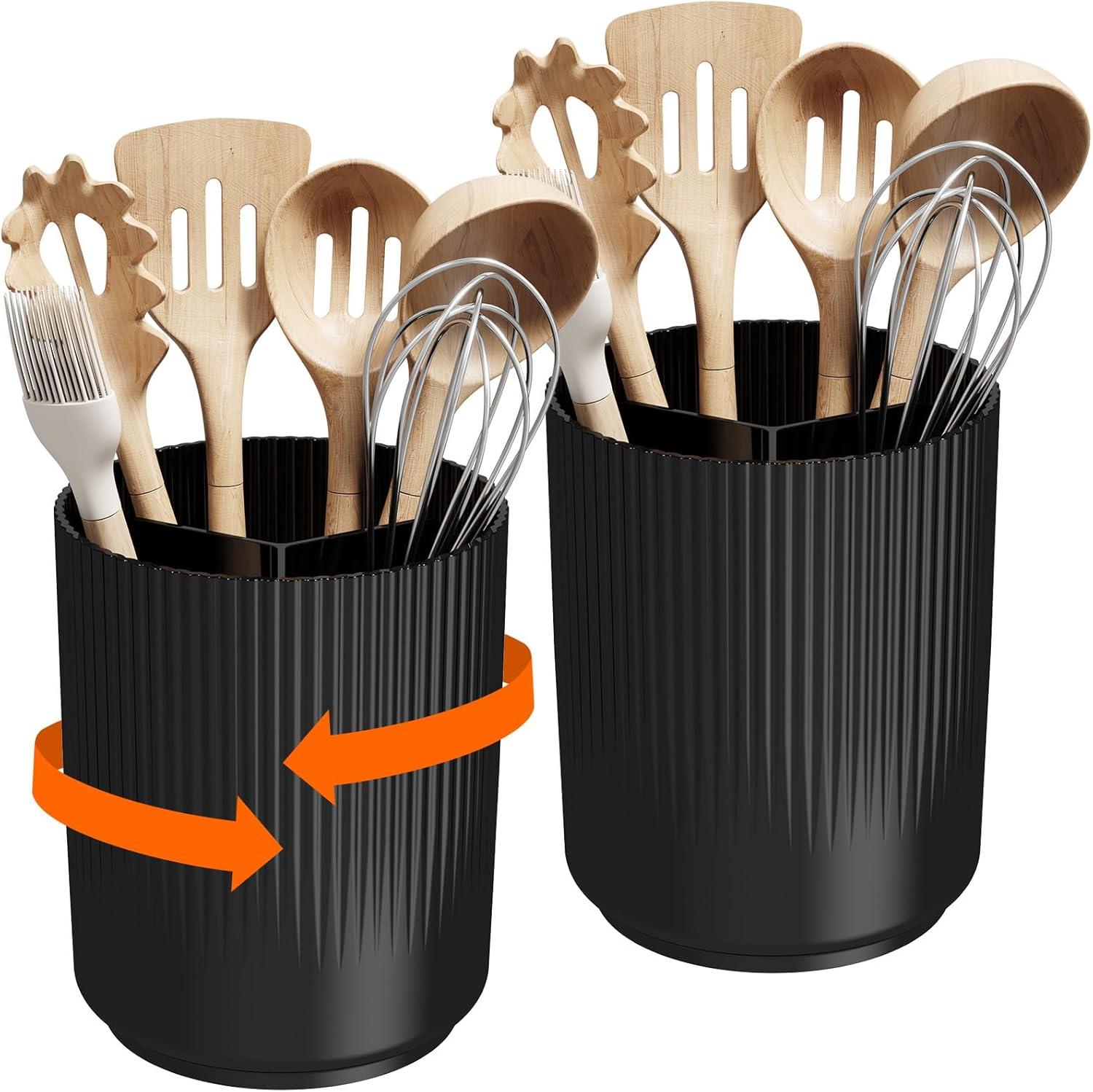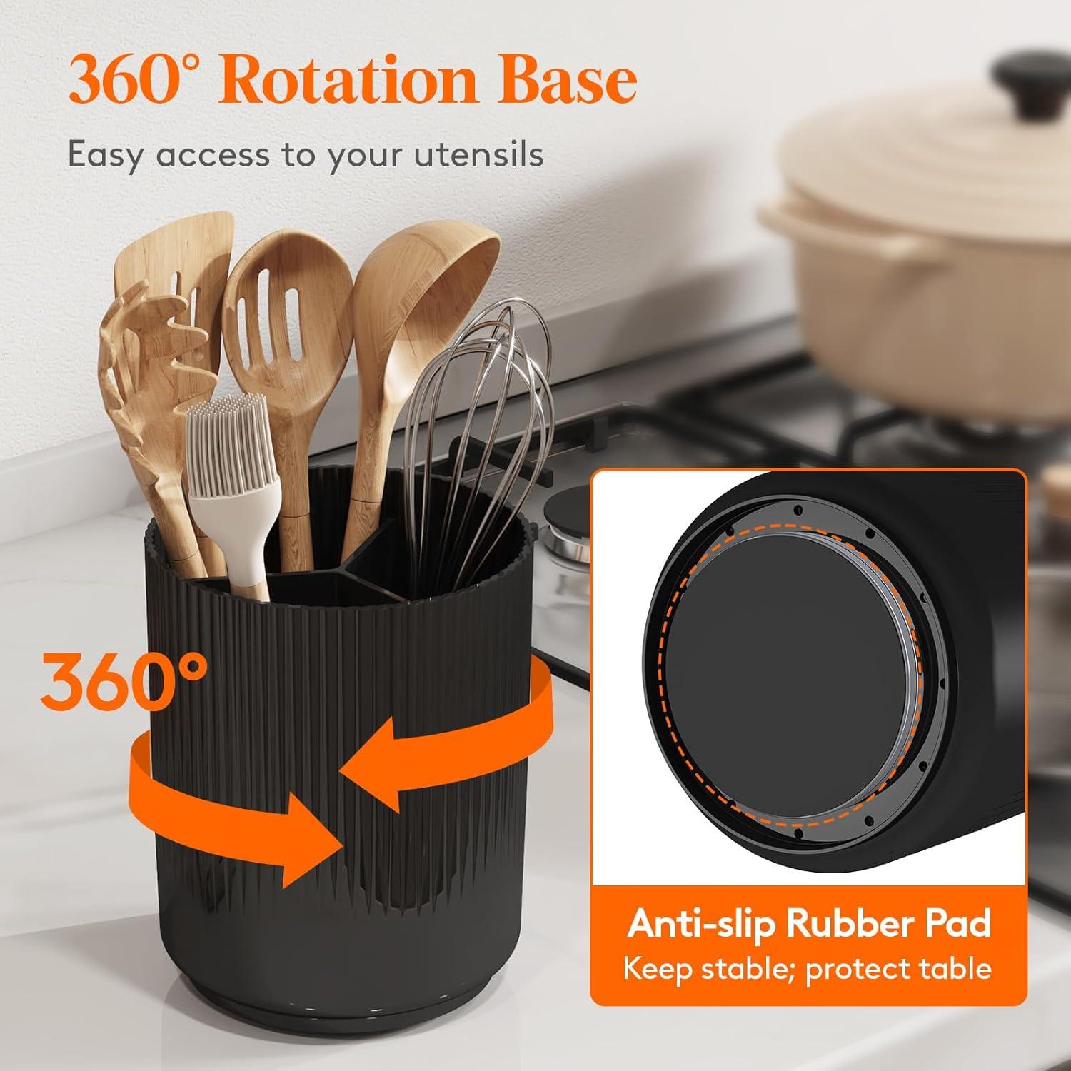 360° Rotating: No more digging through a crowded drawer. The base of this kitchen utensil holder rotates smoothly and silently, allowing you to access any utensil with a simple spin