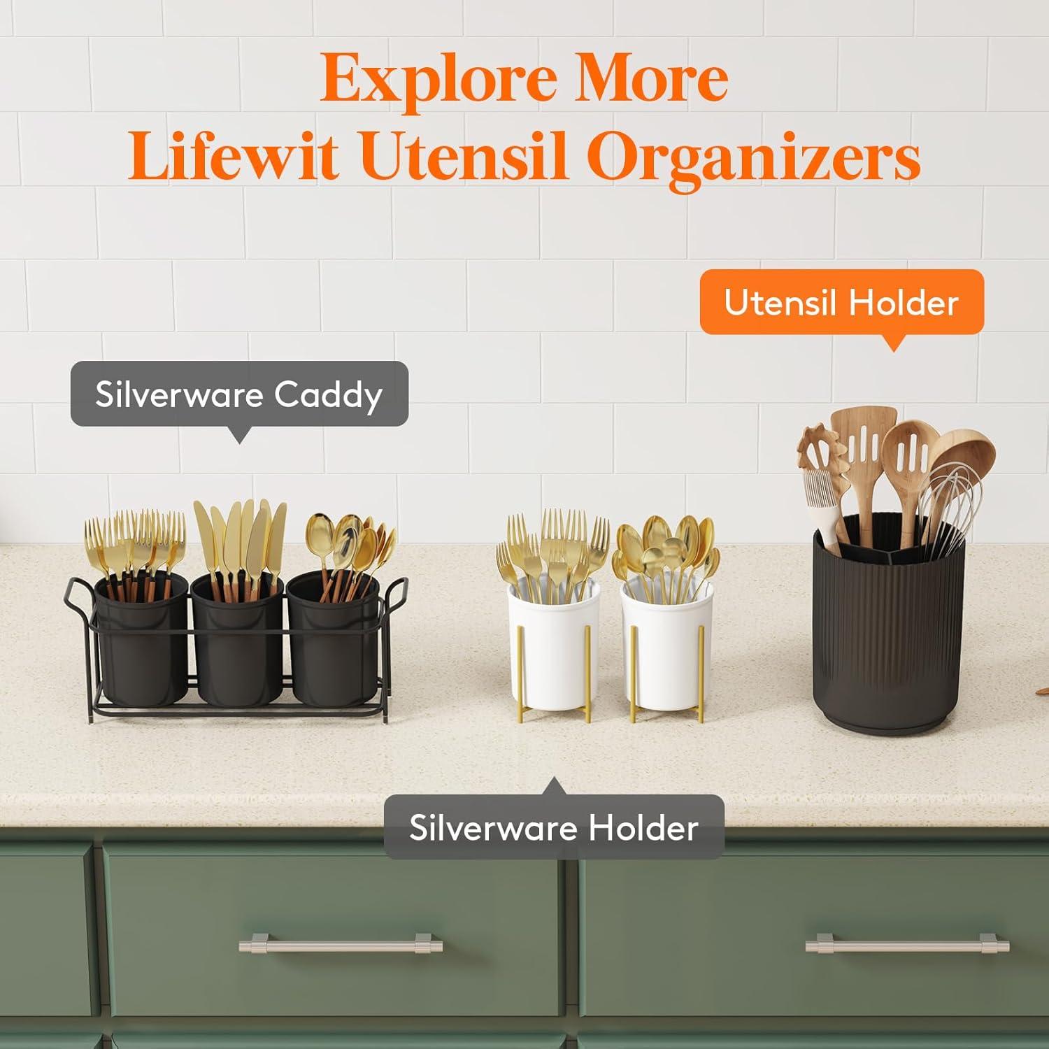 Get your hands on our exclusive Lifewit 7.5" Plastic Utensil Holder for Kitchen Counter, Cooking Silverware Caddy with Non-Slip Rotating Base, 3 Compartment Spoon Spatula Cutlery Flatware Organizer with Dry Draining, White, 1 Pack(Black) collection, now at a discounted price.