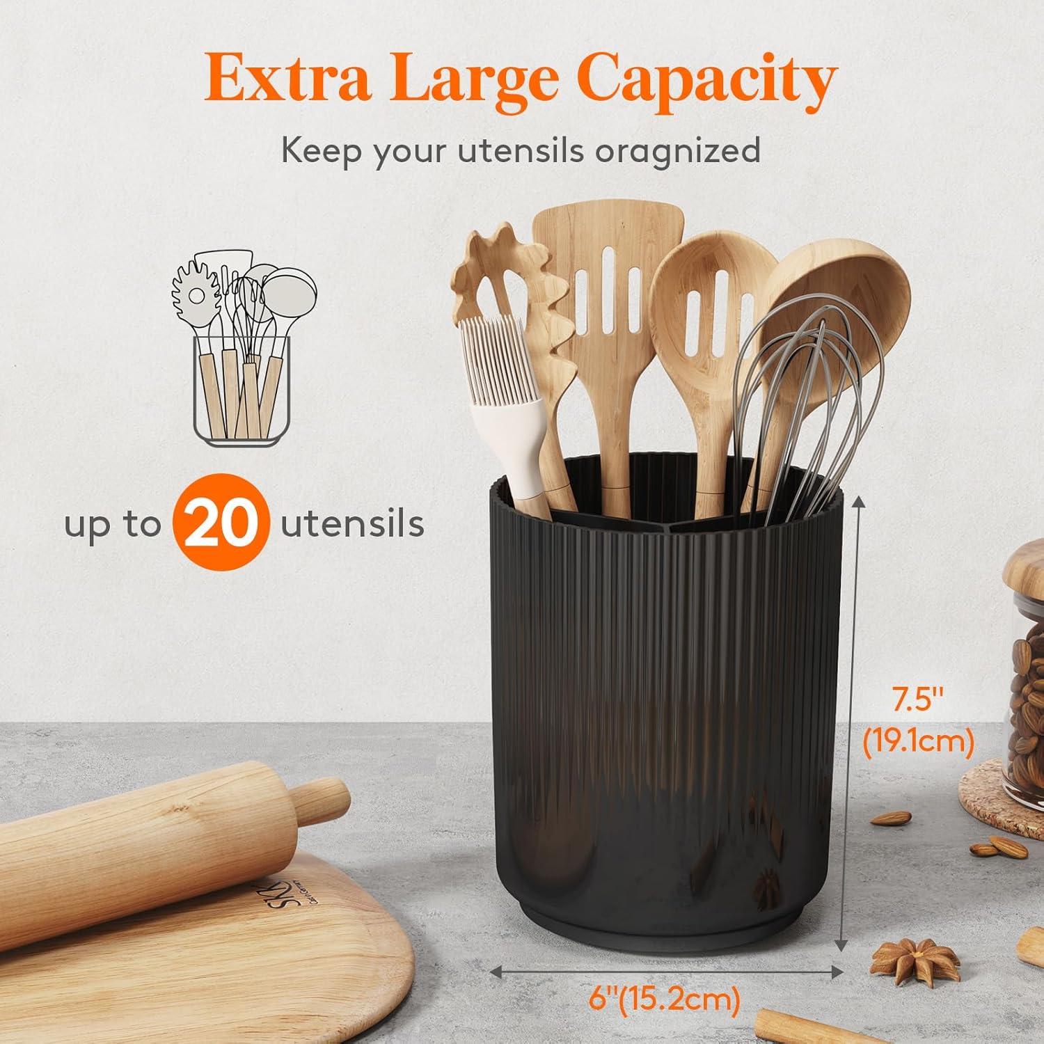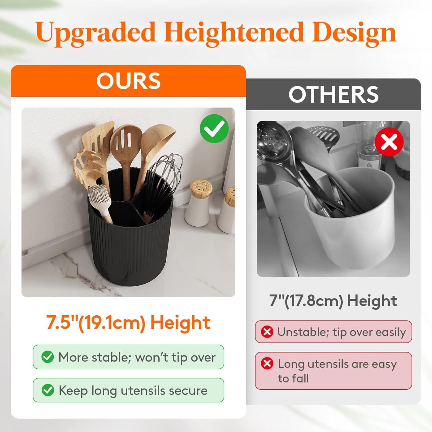 Deep and Extra Large Capacity: With a generous height of 7.5 inches, the Lifewit utensil holder can accommodate up to 20 cooking utensils, including longer tools measuring from 10 to 16 inches. Even longer cookware can be securely stored, keeping the countertop tidy at all times