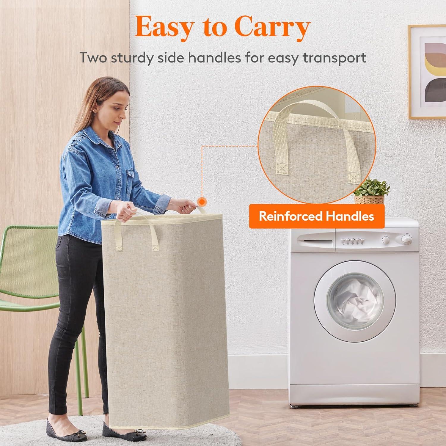 Easy to Carry: Featuring two reinforced nylon handles, this dirty clothes hamper is a breeze to carry around, even when fully loaded; with a generous height of 23.6'', you can reach your ladunry without bending over