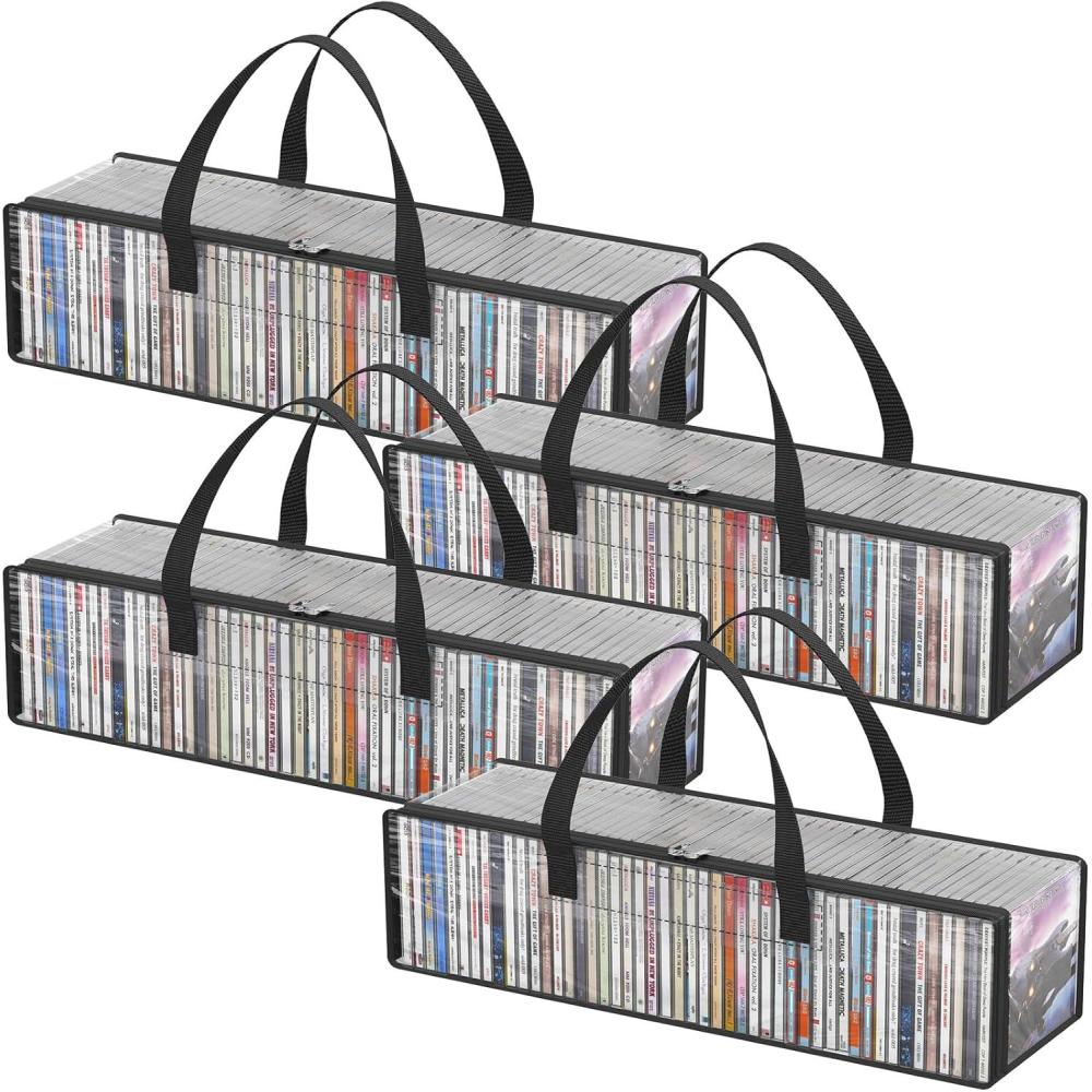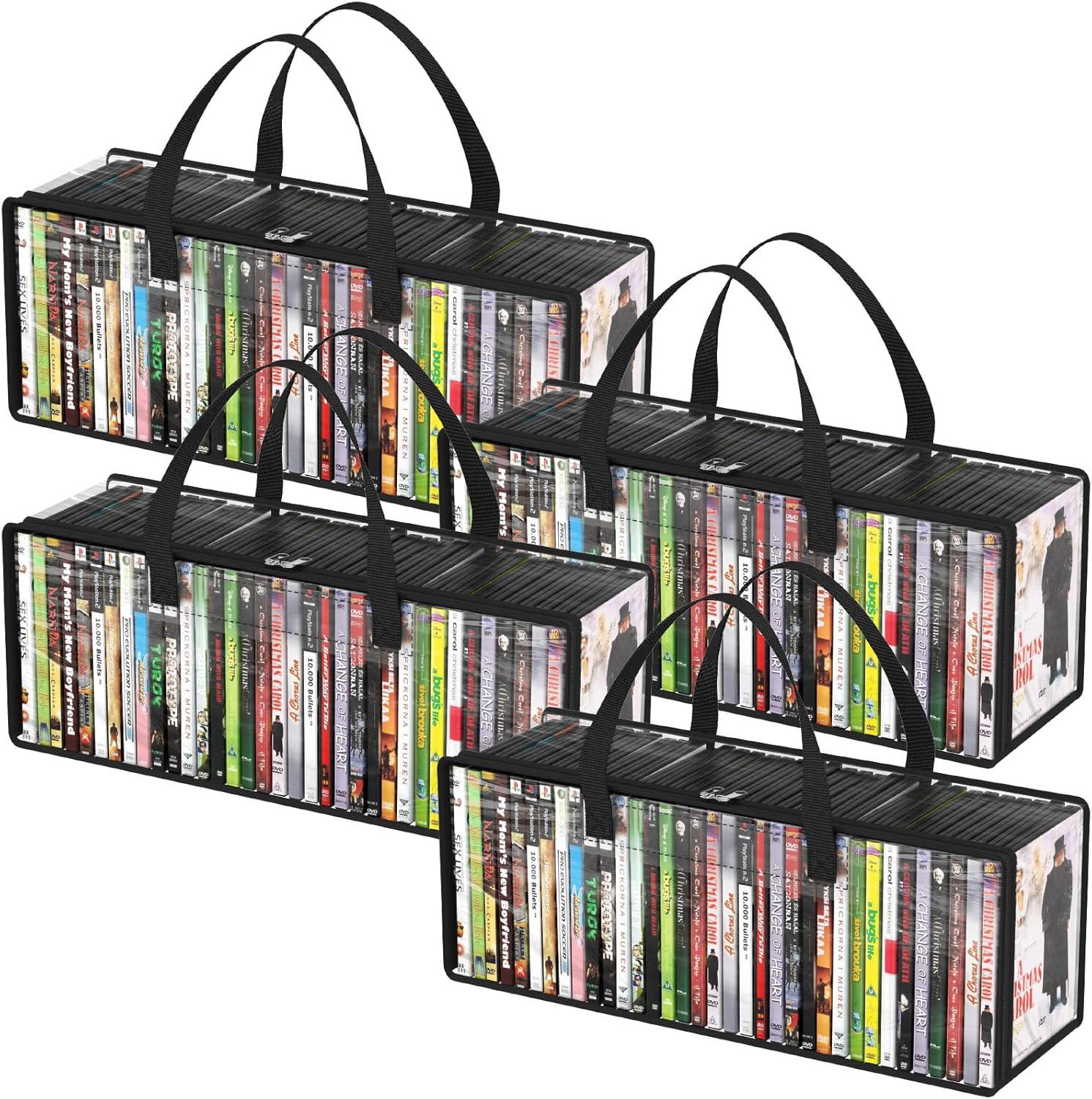 Lifewit CD Storage Bags 2 Pack, Clear PVC Plastic CD Case Holder with Handles, Front Window Zipper Design, Stackable Media Organizer Box for Albums, Hold up to 100 Pcs CDs (50 Each)(4)