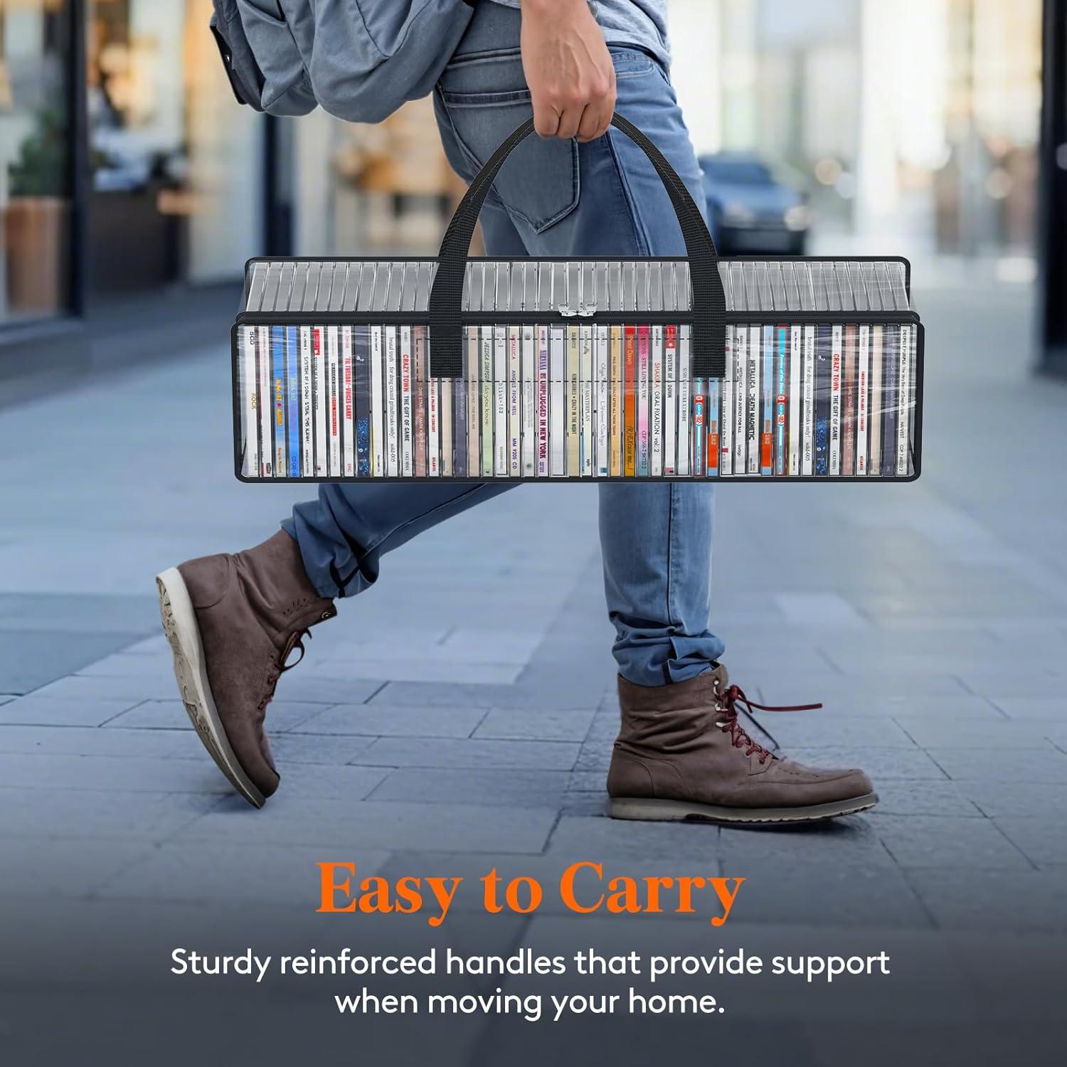 Portable Carry Handles: Reinforced double-stitched side handles on this CD case ensure secure and comfortable transport, preventing drops during moves