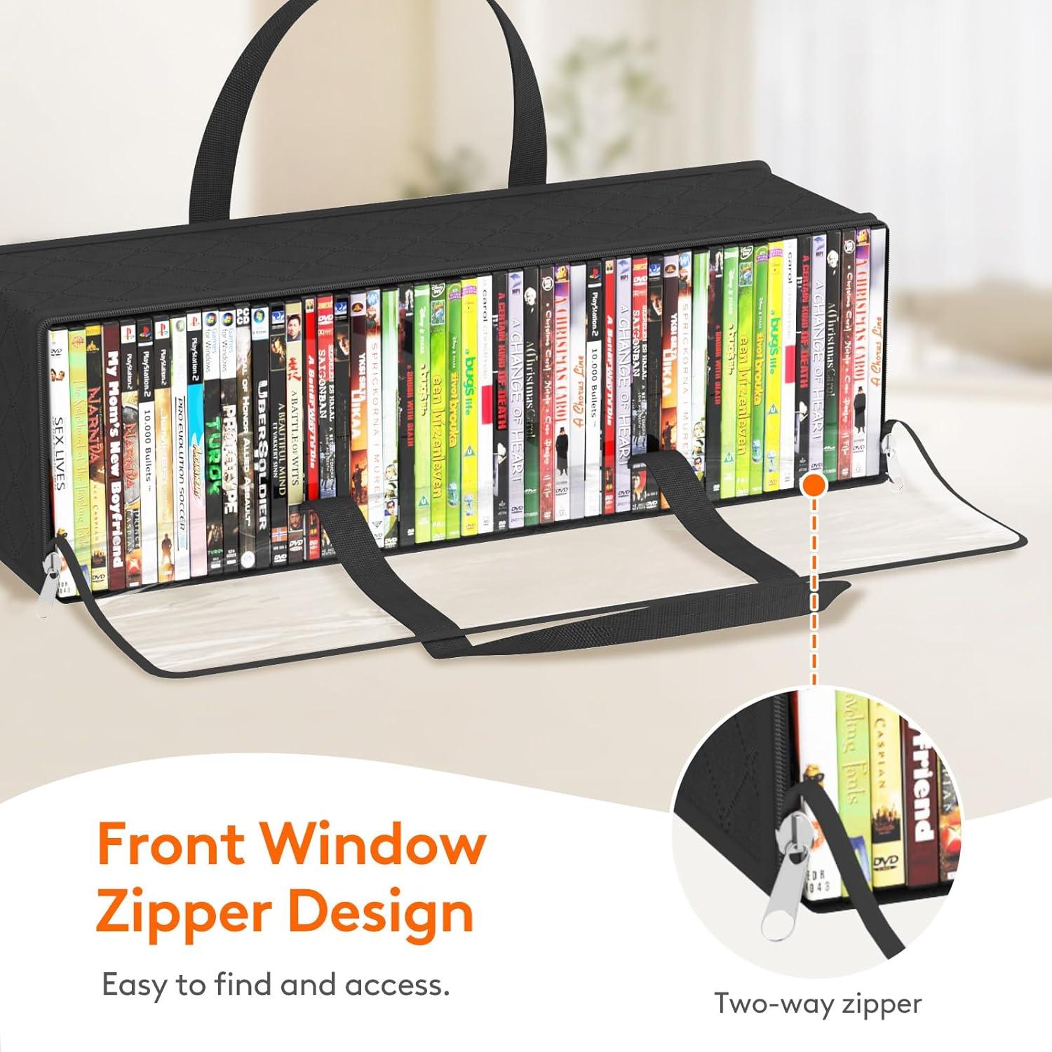 Front Window Zipper Design: The front window zipper design of these DVD case replacements allows for easy access to your DVDs, and the bags can be stacked without affecting the zipper functionality