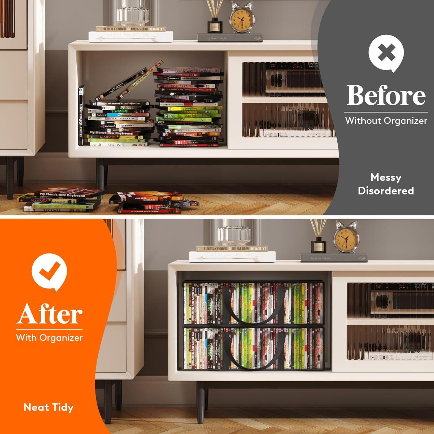 Versatile Use: These DVD storage shelves can store books, photos, VHS tapes, movie boxes, video games, novels, toys, and clothes. They can be placed in the living room, bedroom, media room, office, and kitchen