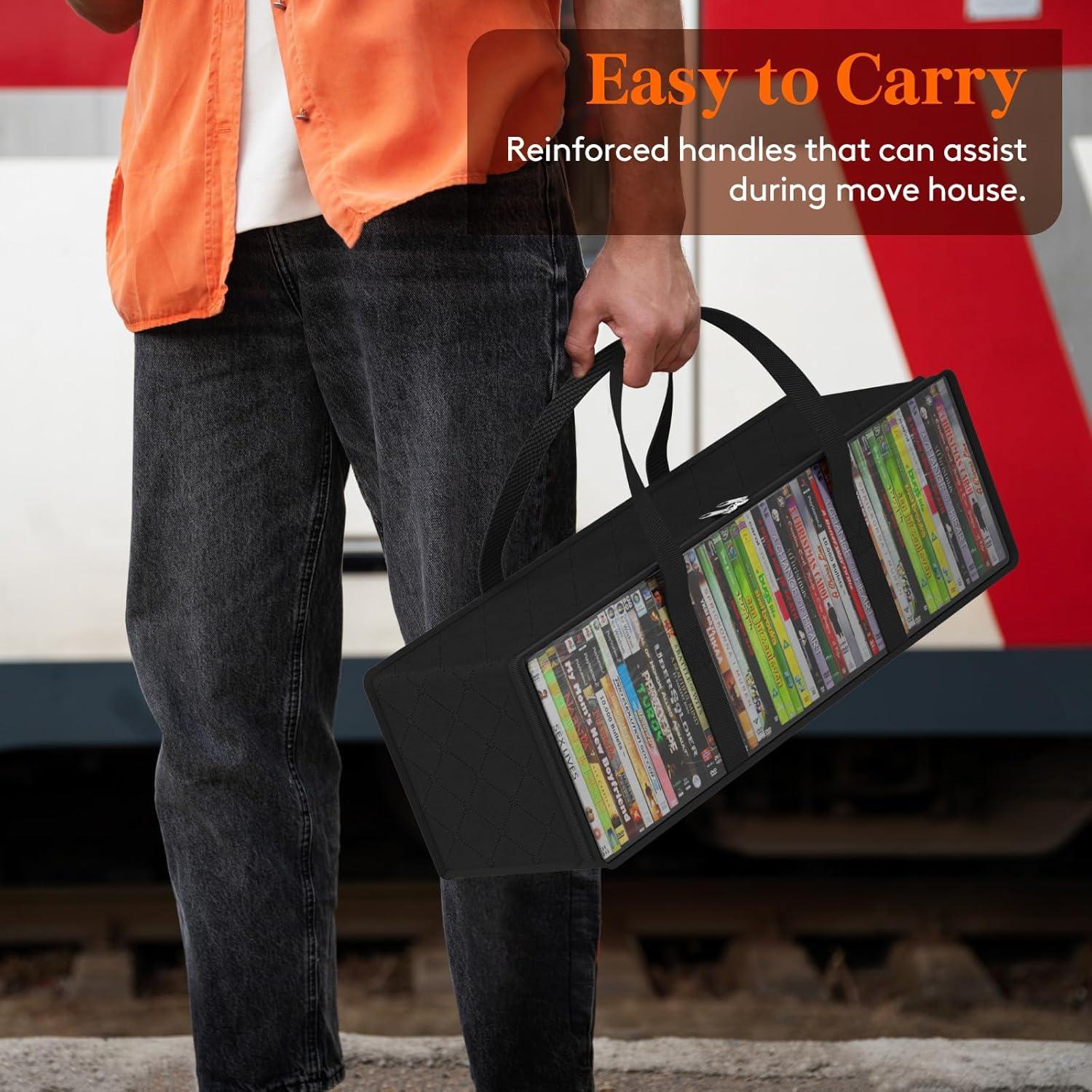 Portable Handles: Equipped with double-stitched reinforced handles on both sides, these media holder bags make carrying your DVDs convenient. The sturdy handles ensure your valuable items won't fall out, making them ideal for use during moves