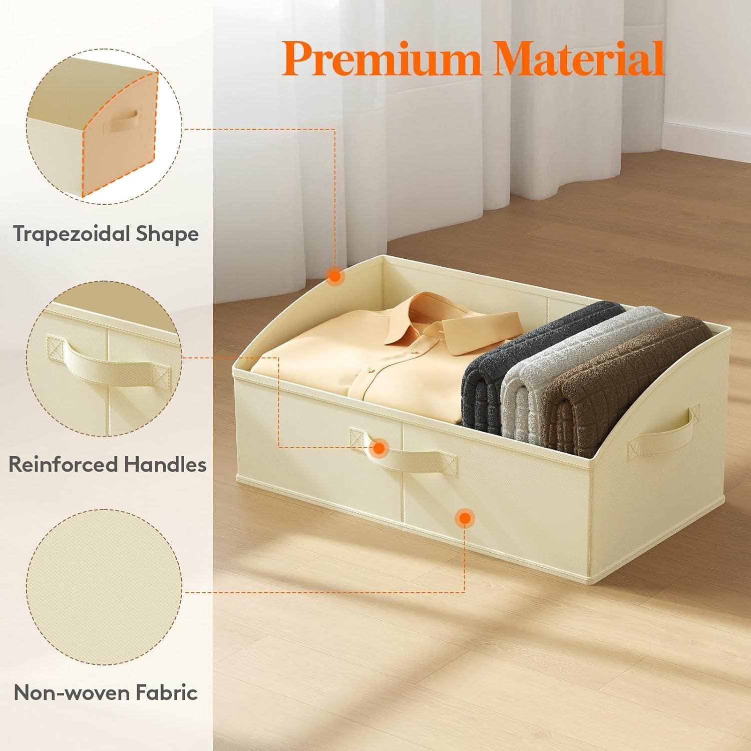Premium Material: Crafted from high-quality non-woven fabric and cardboard, these closet organizer bins are supported by thick cardboard on the sides and bottom, ensuring a sturdy structure that resists deformation. This robust construction guarantees long-term use and excellent load-bearing capacity. Additionally, the bins are foldable, allowing for space-saving storage when not in use