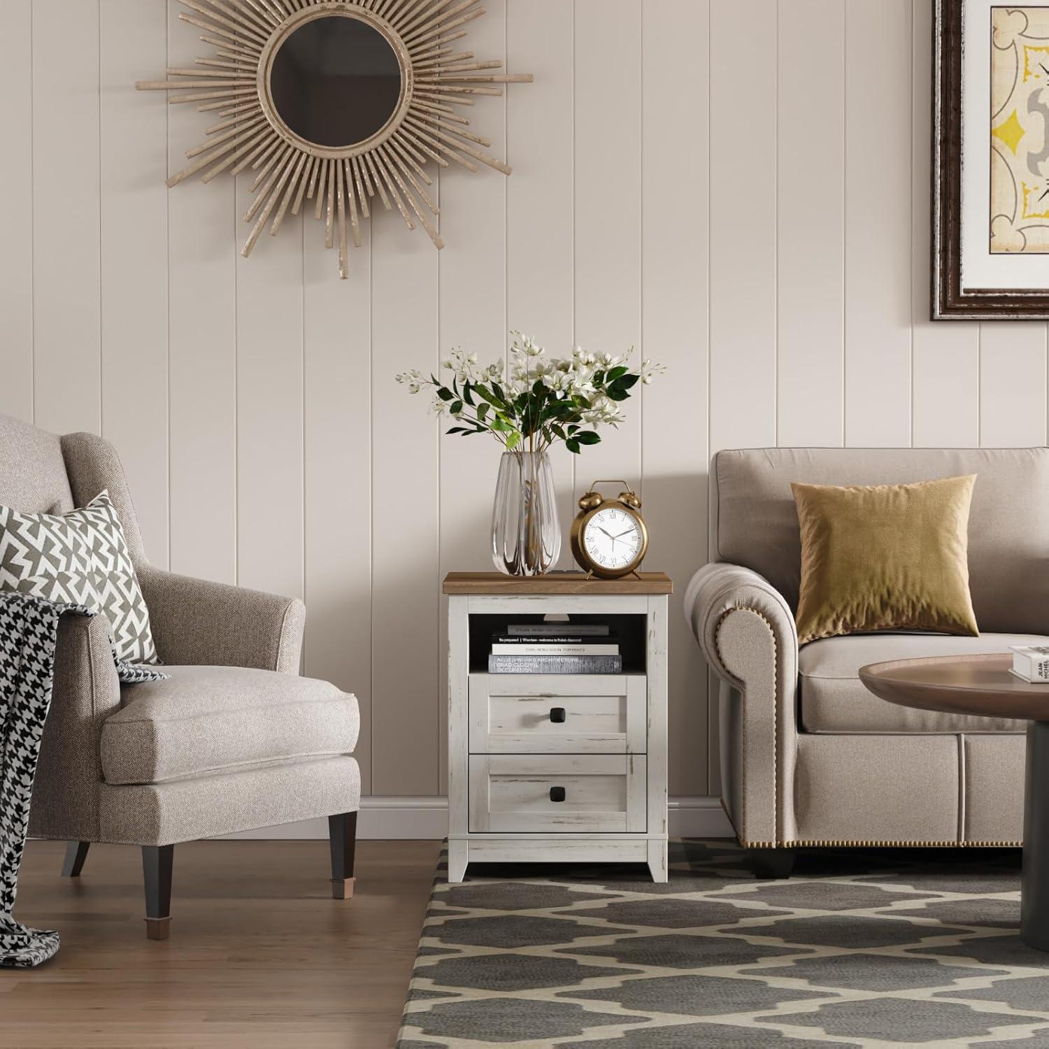 Built-in Power Outlet: Featuring a charging station with 2 AC outlets and 2 USB ports, this end table includes a 2.3-inch round hole at the back for wire management. Keep your table tidy while conveniently charging devices such as phones and headphones