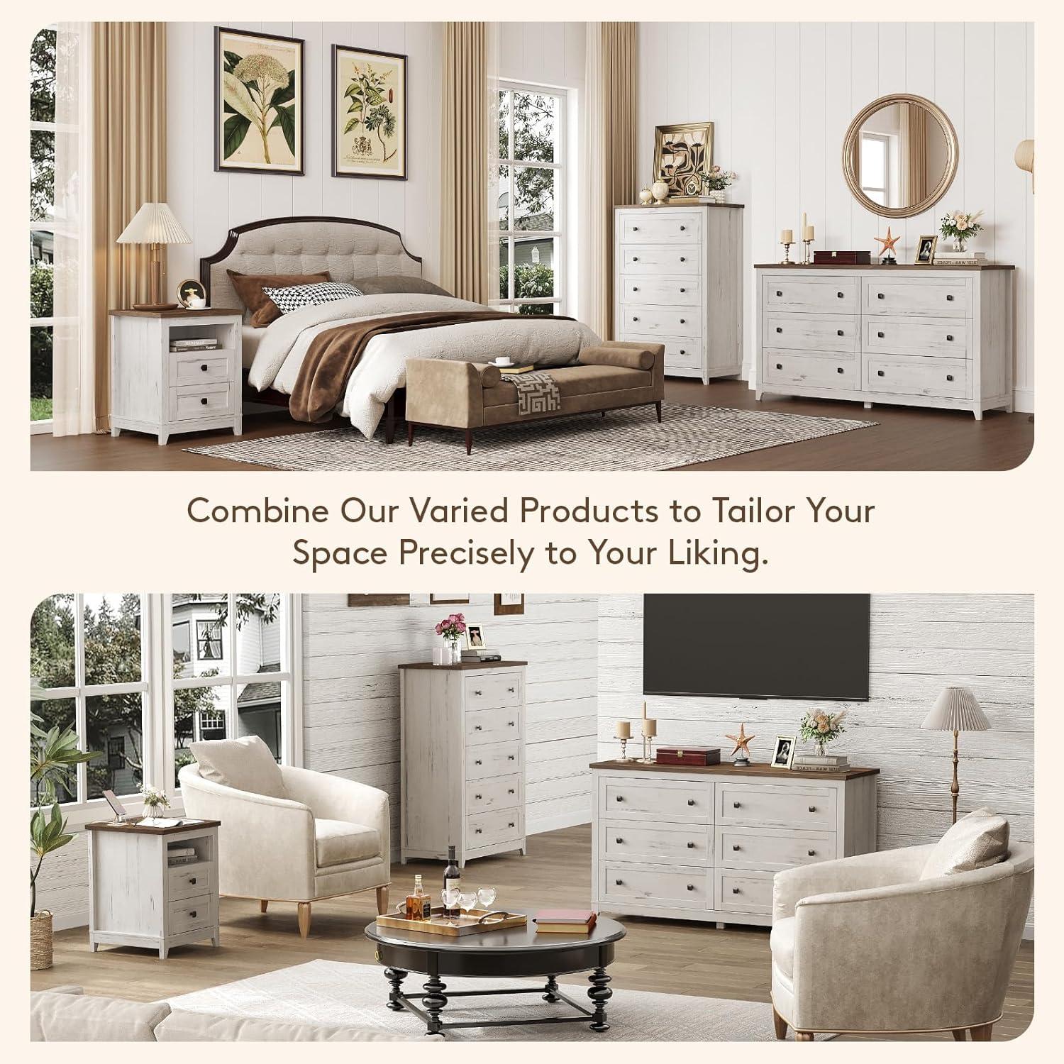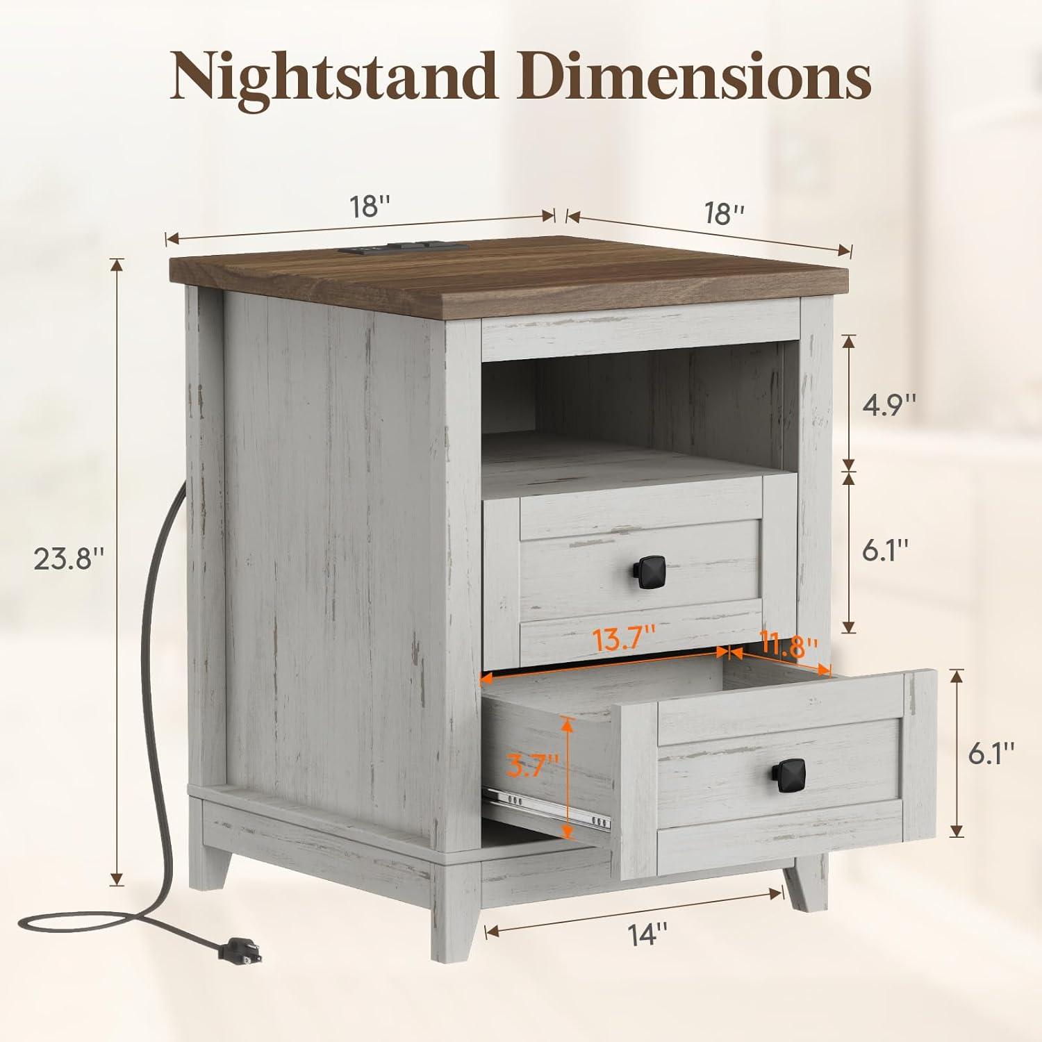 Premium Quality: Made from sturdy engineered wood with a waterproof surface, this nightstand with charging station is easy to clean. Its metal slides and handles provide smooth drawer operation, while the 2''×2'' table legs offer stability