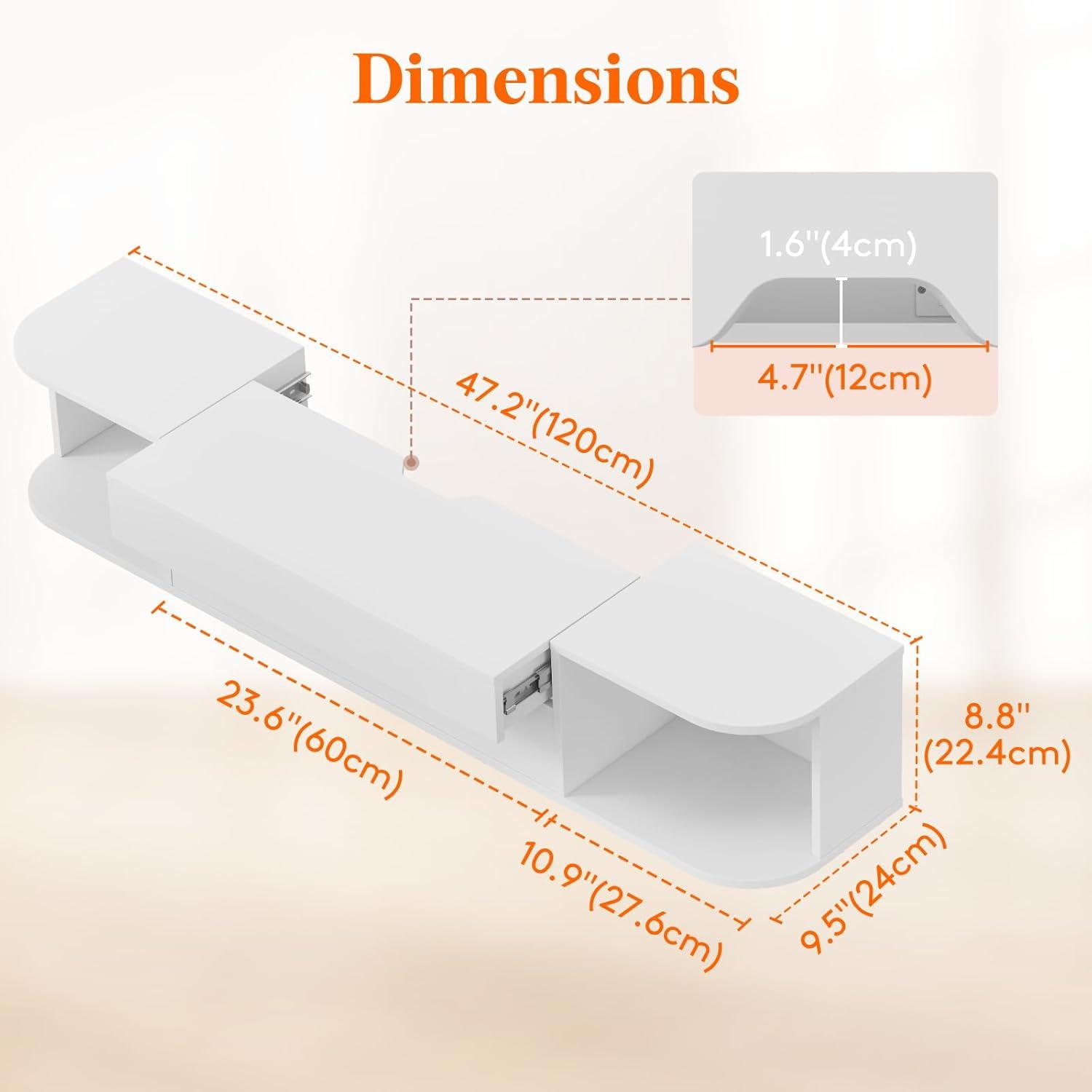 Outstanding Quality and Durability: Made with high-quality hardware and MDF, this floating tv stand shelf is scratch-resistant, waterproof, and easy-to-clean; solidly built for long-term use; dimensions: 47.2 x 8.8 x 9.5 in (120 x 22.4 x 24 cm)