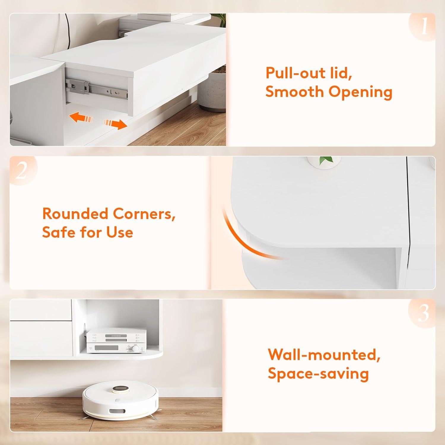Lifewit Floating TV Stand for up to 50" TV, Wall Mounted Entertainment Center with Power Outlets and USB Ports, Large Storage Space with Sliding Tabletop, Open Shelves, White(White)