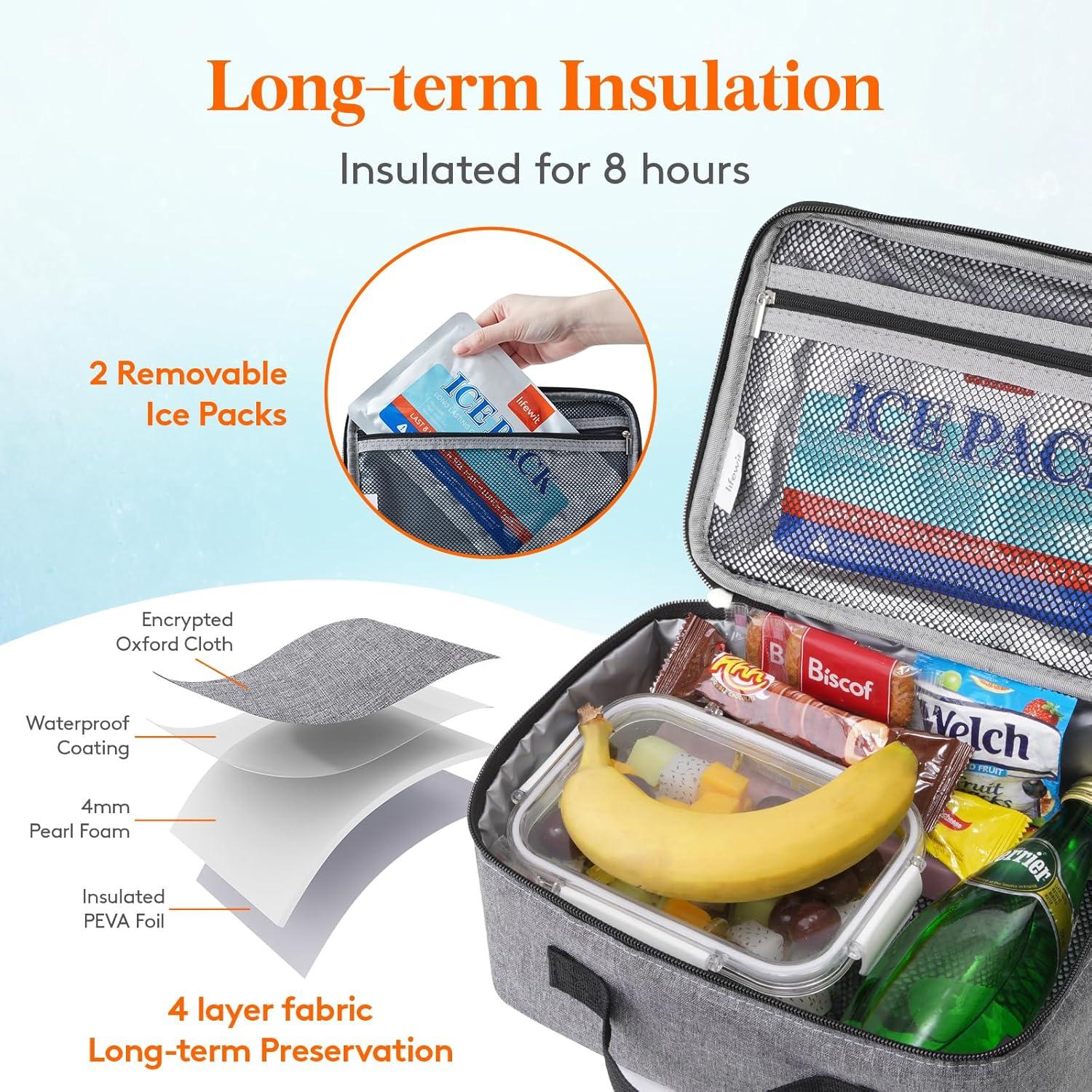 Lifewit Freezable Lunch Box, Insulated Reusable Lunch Bag with 2 Ice Packs, Mini Cooler Snack Bag for Bento Box for Salad, Sandwich, Snacks fo Men Women for Work, Black 5L(Gray)