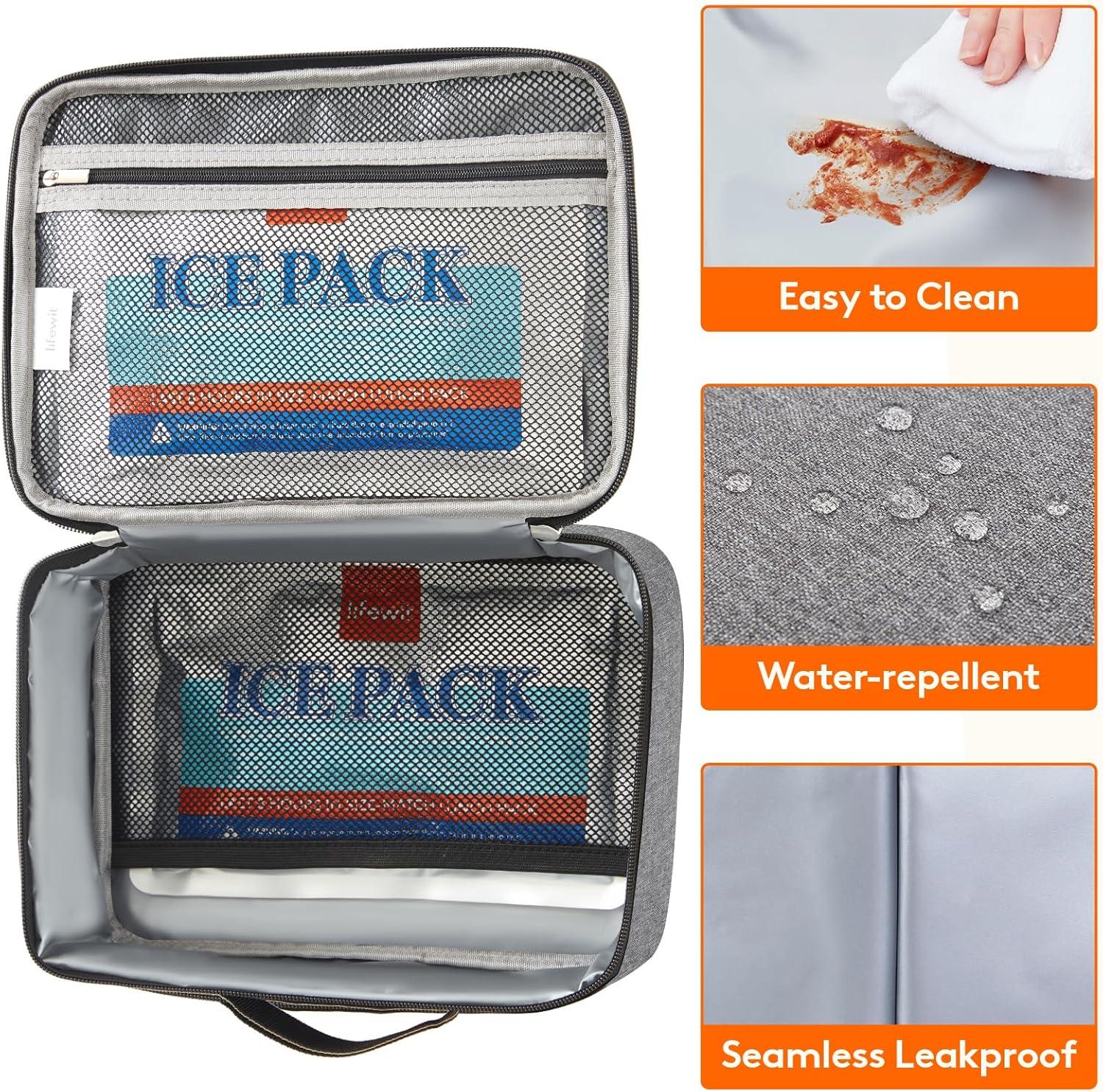 imageLifewit Freezable Lunch Box Insulated Reusable Lunch Bag with 2 Ice Packs Mini Cooler Snack Bag for Bento Box for Salad Sandwich Snacks fo Men Women for Work Black 5LGray