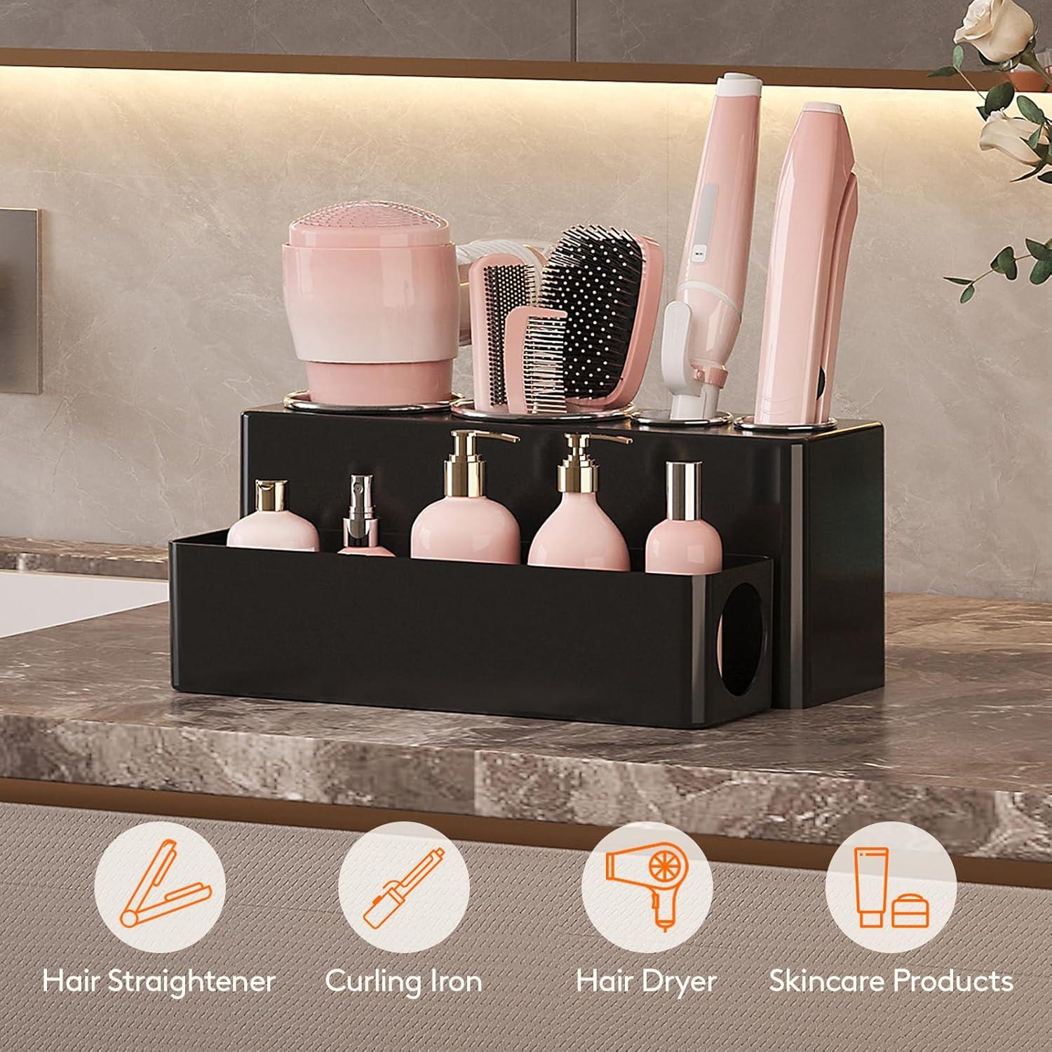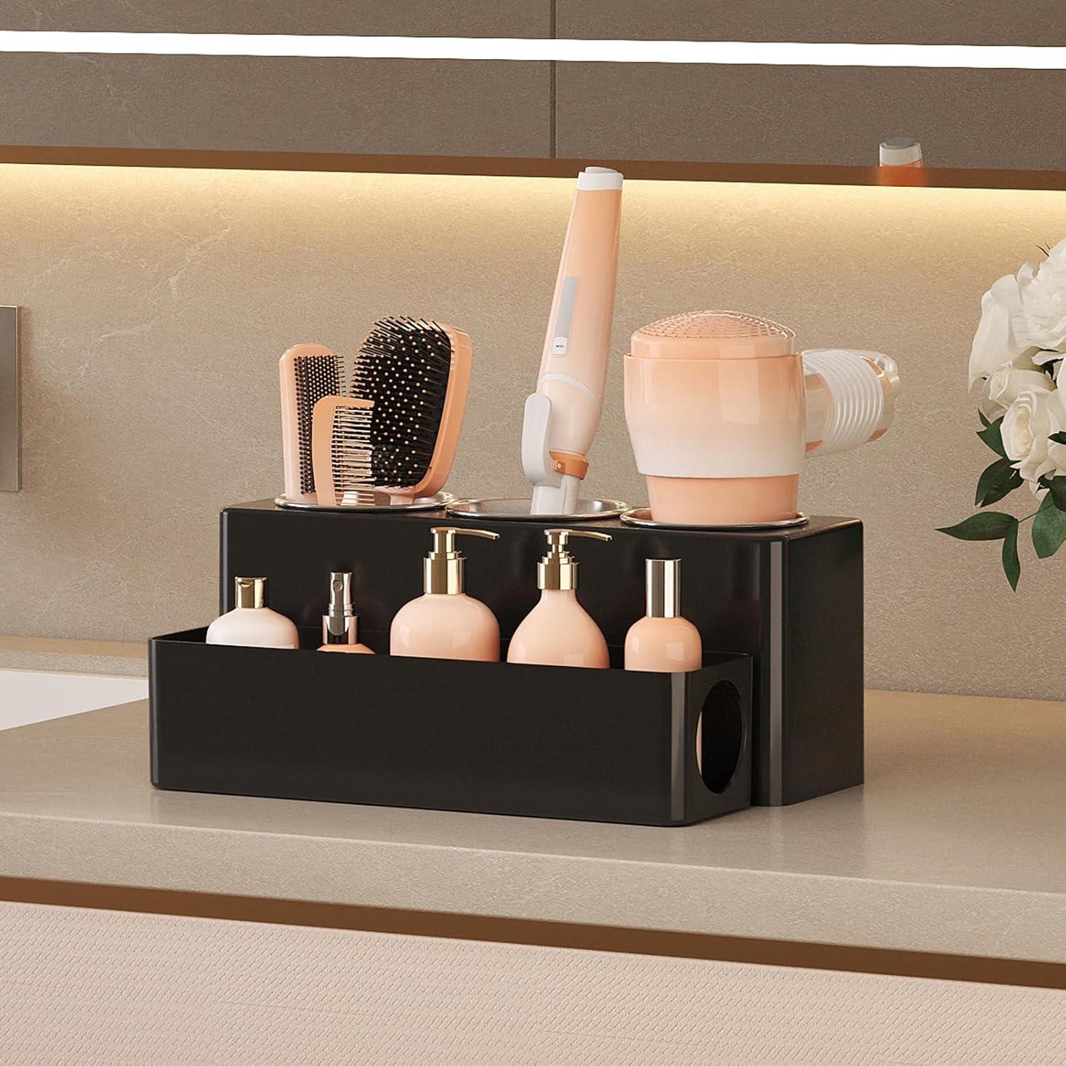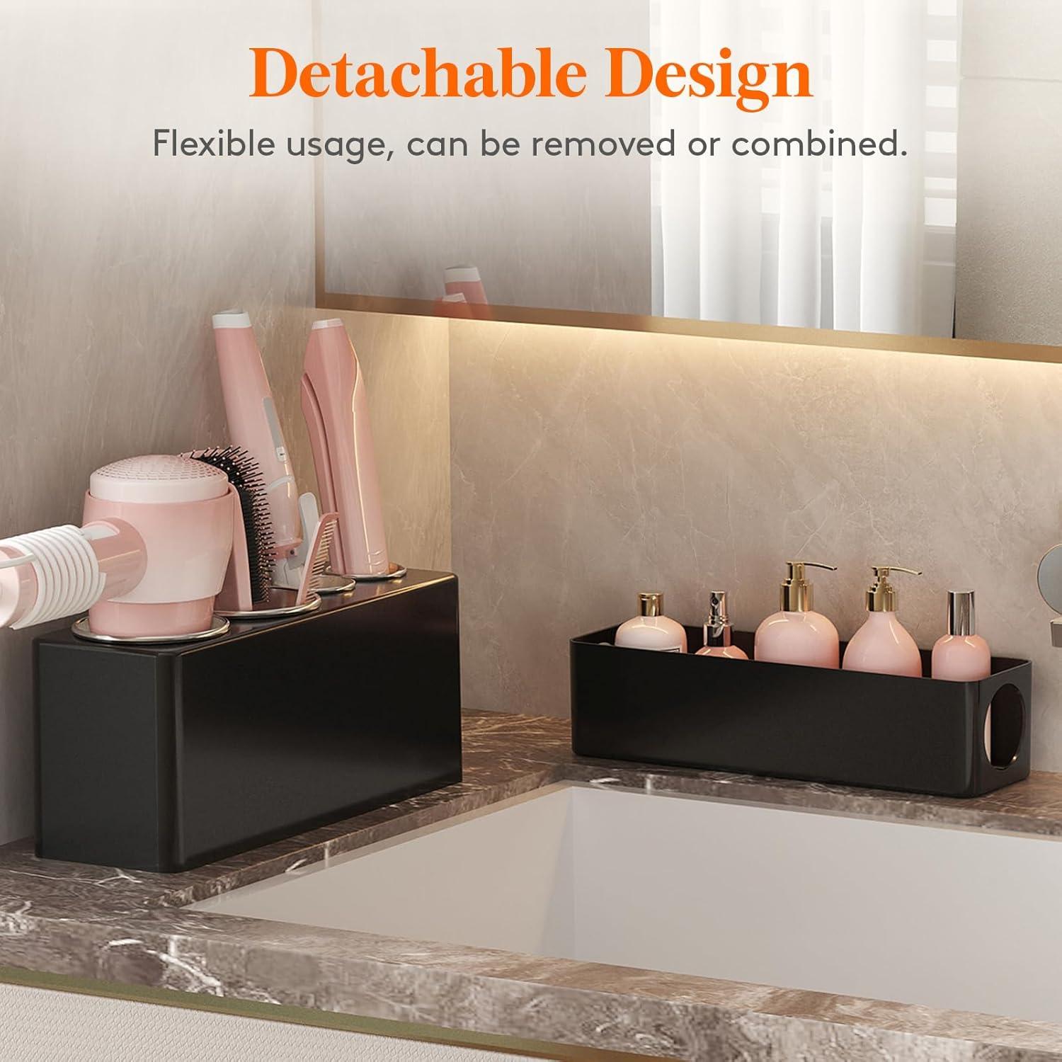 Premium Material: This bathroom countertop organizer is made of sturdy and rust-proof ABS plastic for long-term reliable use. You can easily clean this hair dryer holder with water or a damp towel, ensuring convenient maintenance