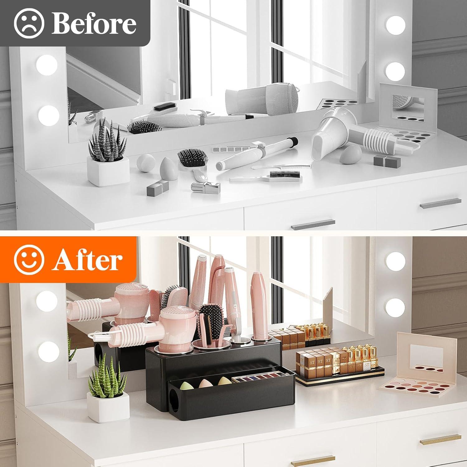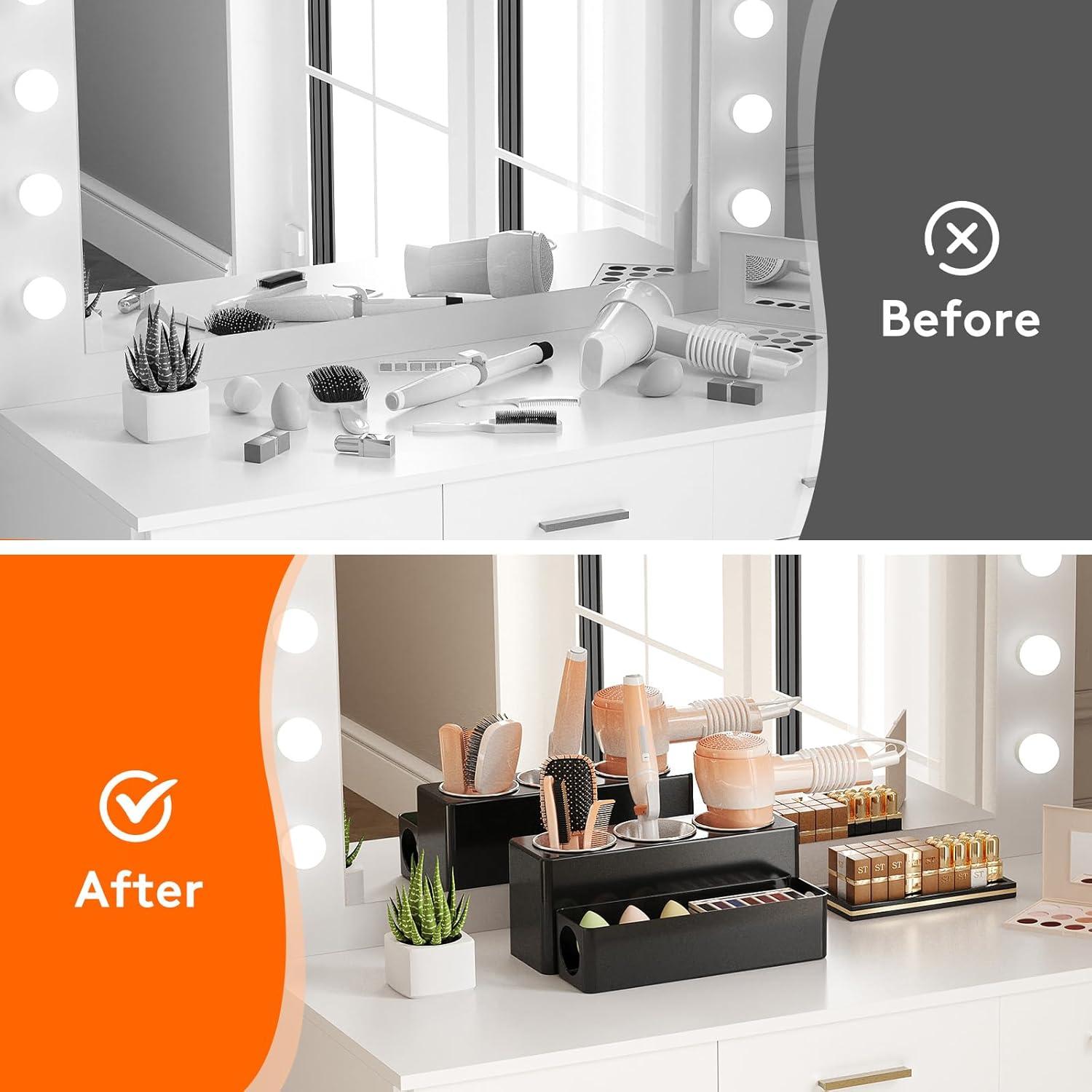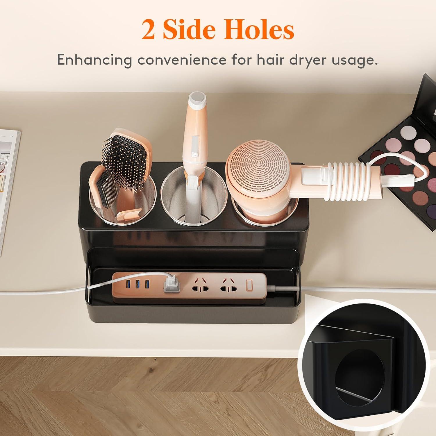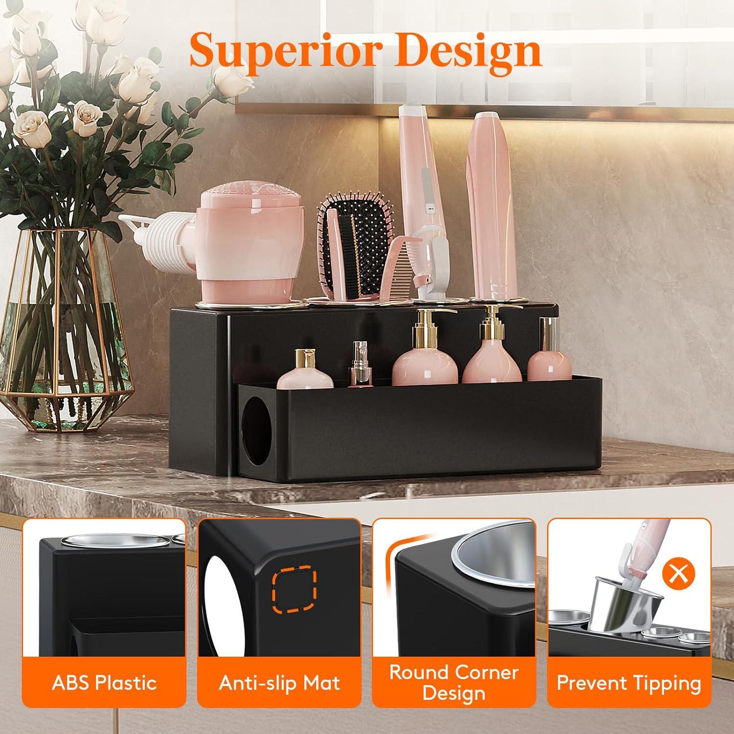 Heat-Resistant Tool Holder: This hot tools organizer comes with four heat-resistant stainless steel cups, which serve as holders for your dryer and curlers, helping them cool down quickly. The cups feature a deep design to ensure stability and prevent tipping