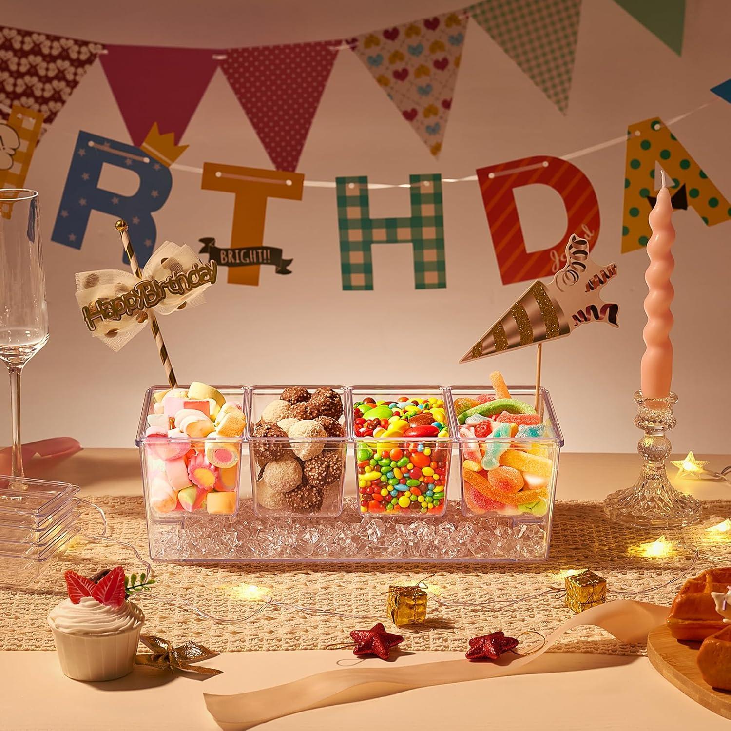 Premium Quality: Crafted from sturdy, BPA-free PS plastic, our clear condiment organizer ensures food safety with a seamless view of contents and an aesthetic touch. It’s perfect for serving fruits, salads, condiments, cookies, or any delectable treats. Note: Avoid direct contact with hot food.