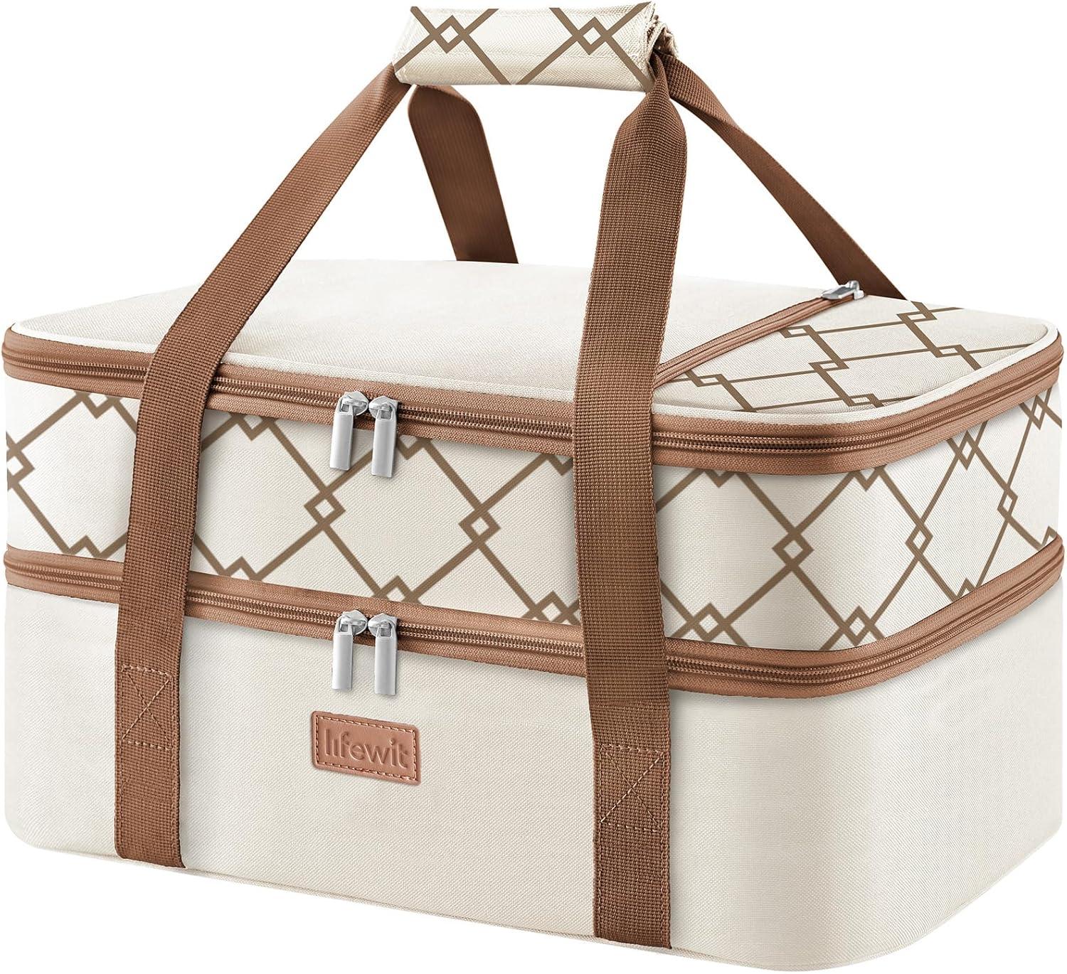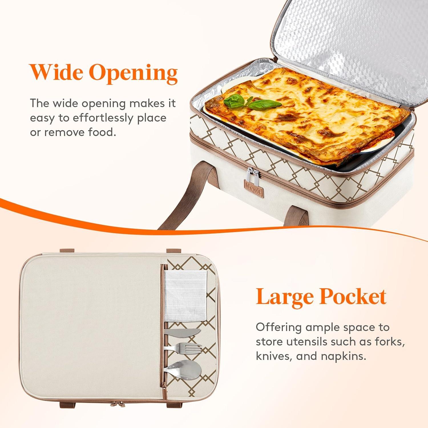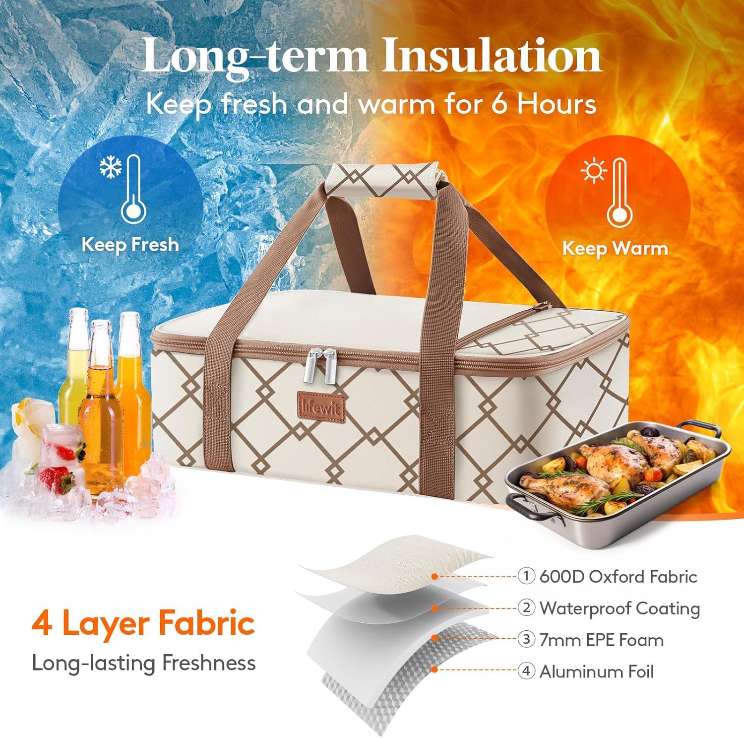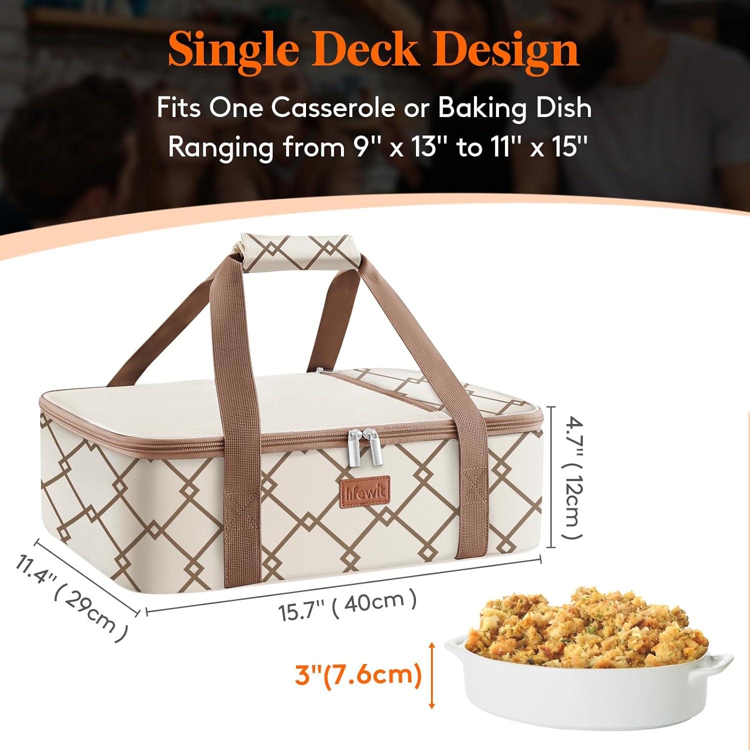 Lifewit Insulated Casserole Carrier for Hot or Cold Food, Casserole Dish Bag Carrying Case, Lasagna Lugger Holder for Potluck/Parties/Picnic/Cookouts, Fits 9"x13" Baking Dish, Black(Beige)