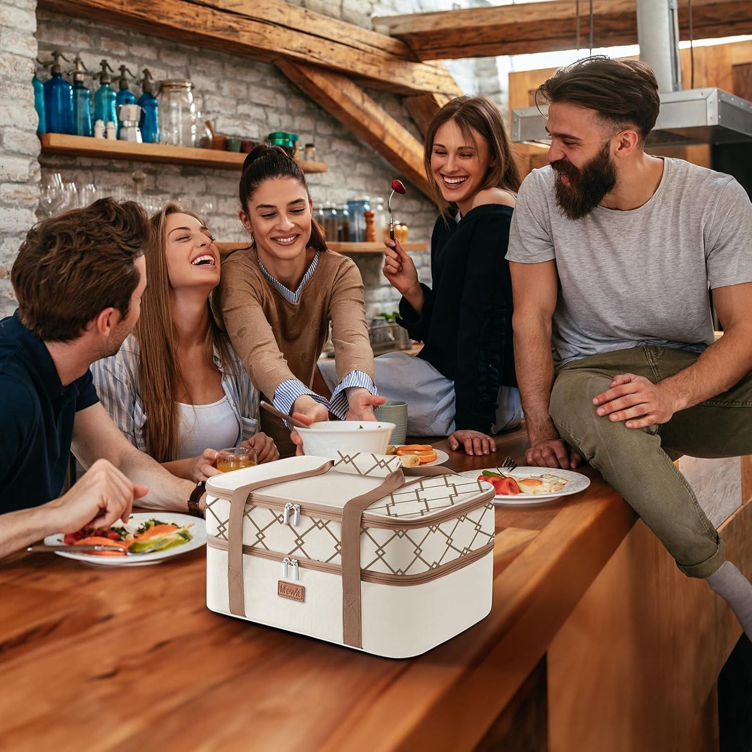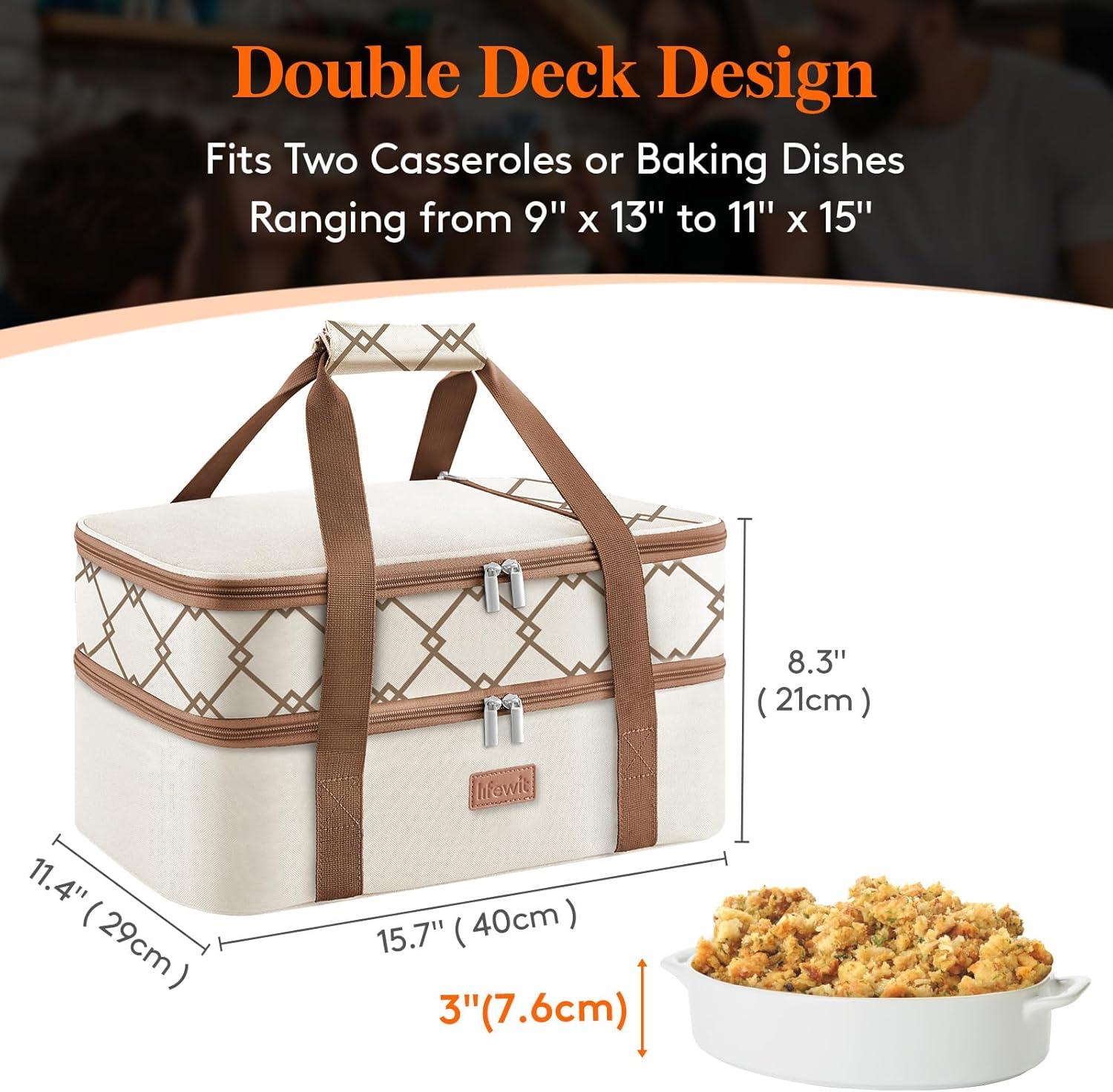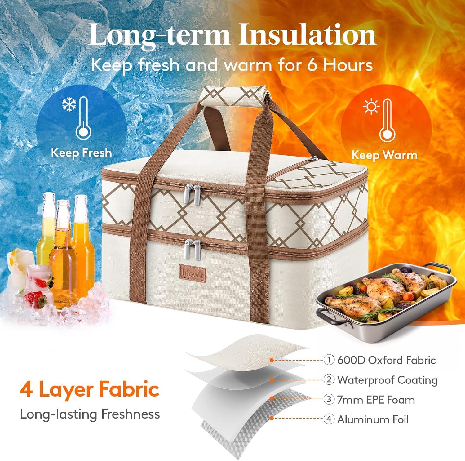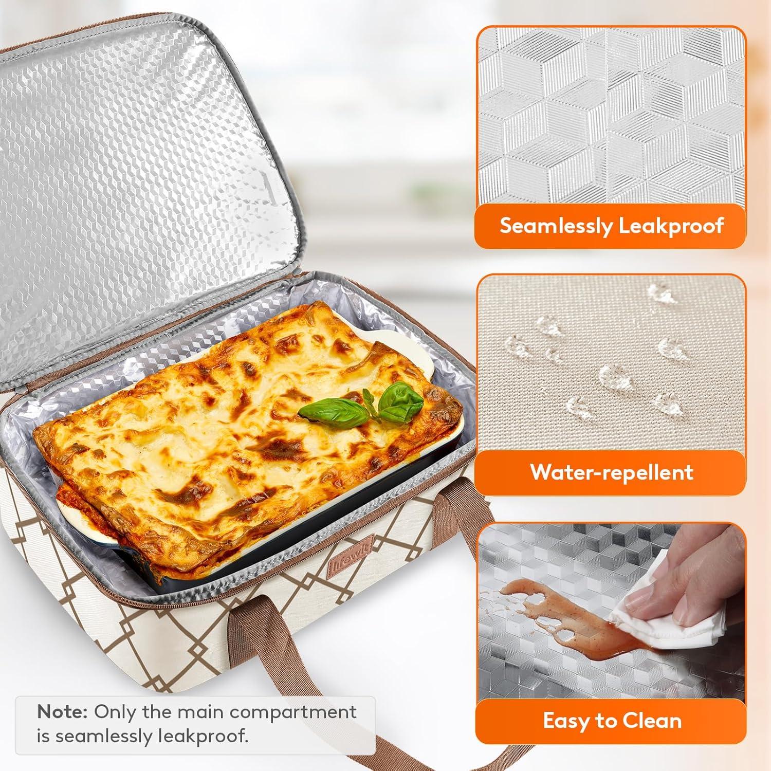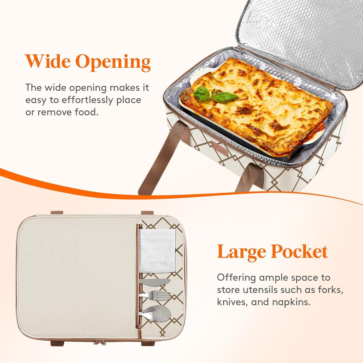 Lifewit Insulated Casserole Carrier for Hot or Cold Food, Casserole Dish Bag Carrying Case, Lasagna Lugger Holder for Potluck/Parties/Picnic/Cookouts, Fits 9"x13" Baking Dish, Black(Beige)