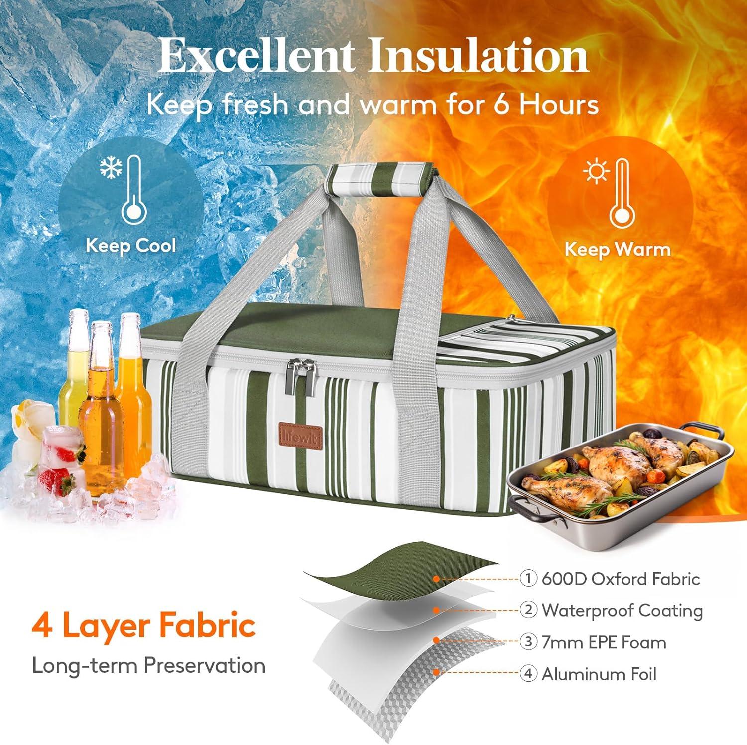 imageLifewit Insulated Casserole Carrier for Hot or Cold Food Casserole Dish Carrying Case Lasagna Holder for Potluck PartiesPicnicCookouts Fits 9quotx13quot Baking Dish GreyGreen