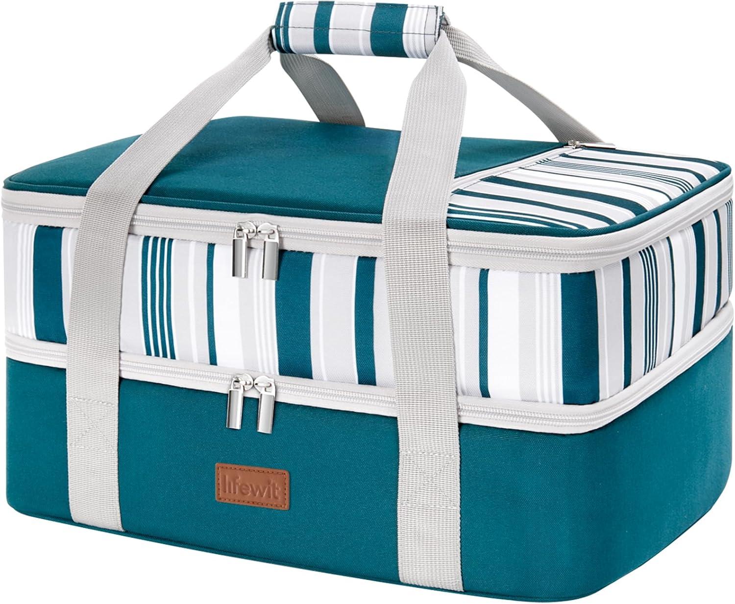 imageLifewit Insulated Casserole Carrier for Hot or Cold Food Casserole Dish Carrying Case Lasagna Holder for Potluck PartiesPicnicCookouts Fits 9quotx13quot Baking Dish GreyDark Green