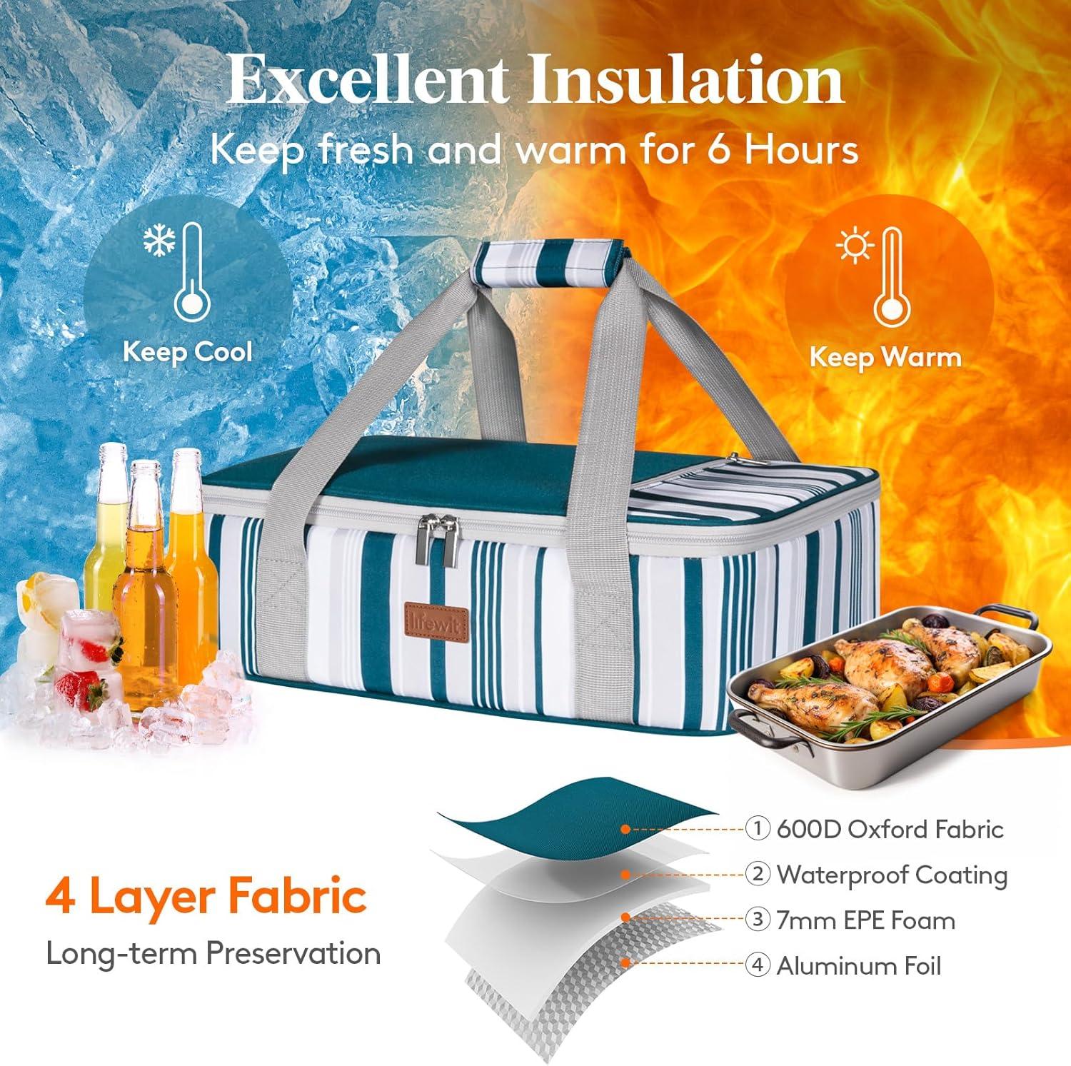 imageLifewit Insulated Casserole Carrier for Hot or Cold Food Casserole Dish Carrying Case Lasagna Holder for Potluck PartiesPicnicCookouts Fits 9quotx13quot Baking Dish GreyGreen