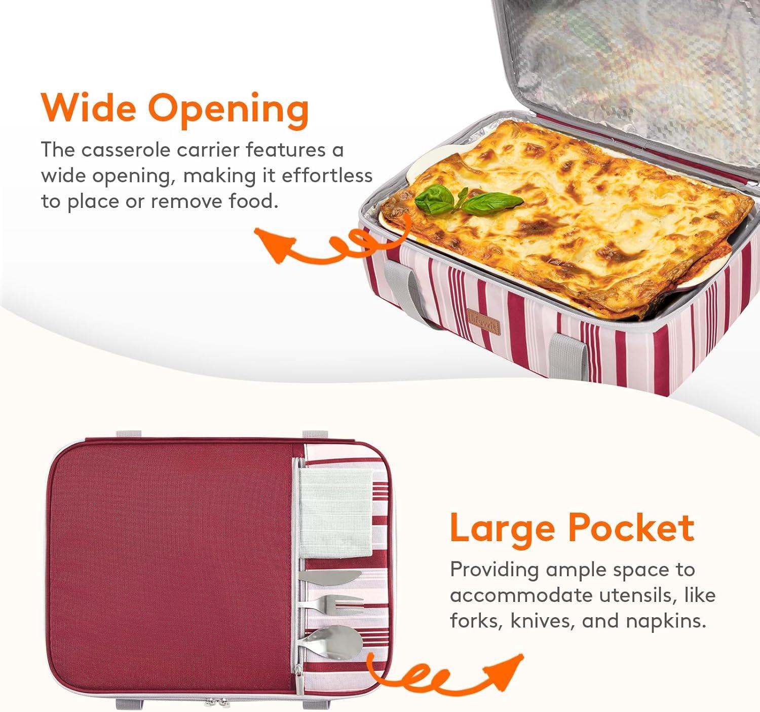 Lifewit Insulated Casserole Carrier for Hot or Cold Food, Casserole Dish Carrying Case, Lasagna Holder for Potluck Parties/Picnic/Cookouts, Fits 9"x13" Baking Dish, Grey(Red)