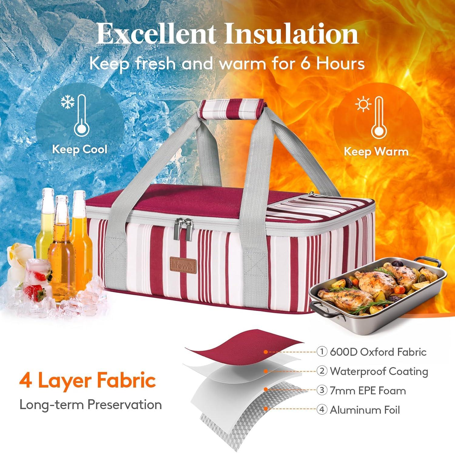 Lifewit Insulated Casserole Carrier for Hot or Cold Food, Casserole Dish Carrying Case, Lasagna Holder for Potluck Parties/Picnic/Cookouts, Fits 9″x13″ Baking Dish, Grey(Red)