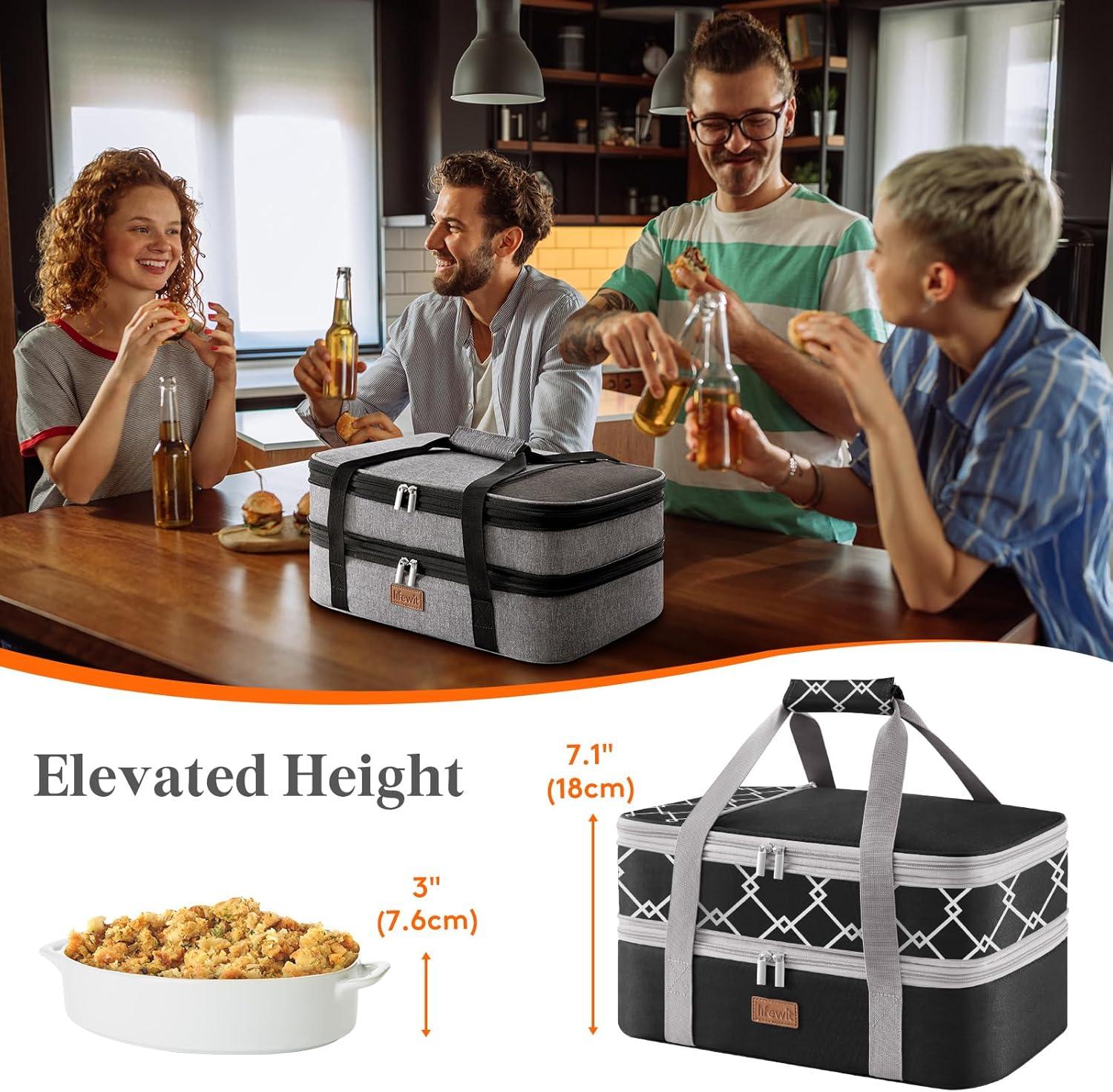 imageLifewit Insulated Double Casserole Carrier Thermal Lunch Tote for Potluck Parties Picnic Beach Fits 9 x 13 Inches Casserole Dish Expandable by Mid Zipper GreyBlackGeometric