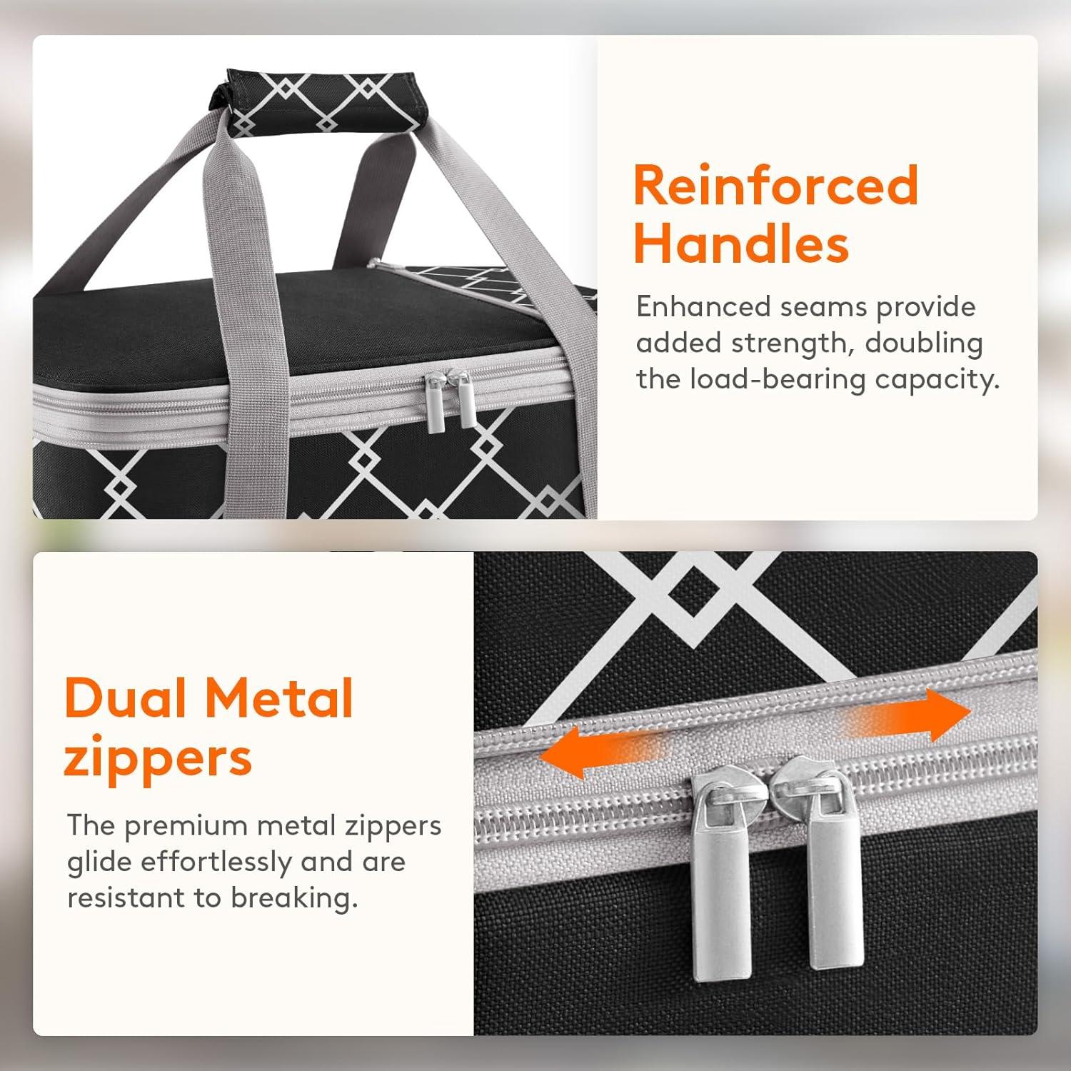 Convenient & Portable: The portable food carrier features wide openings and zipper closures, making packing effortless. It comes with two carry handles for convenient transport. Additionally, it includes a spacious top zipper pocket for storing utensils, allowing for easy accessibility