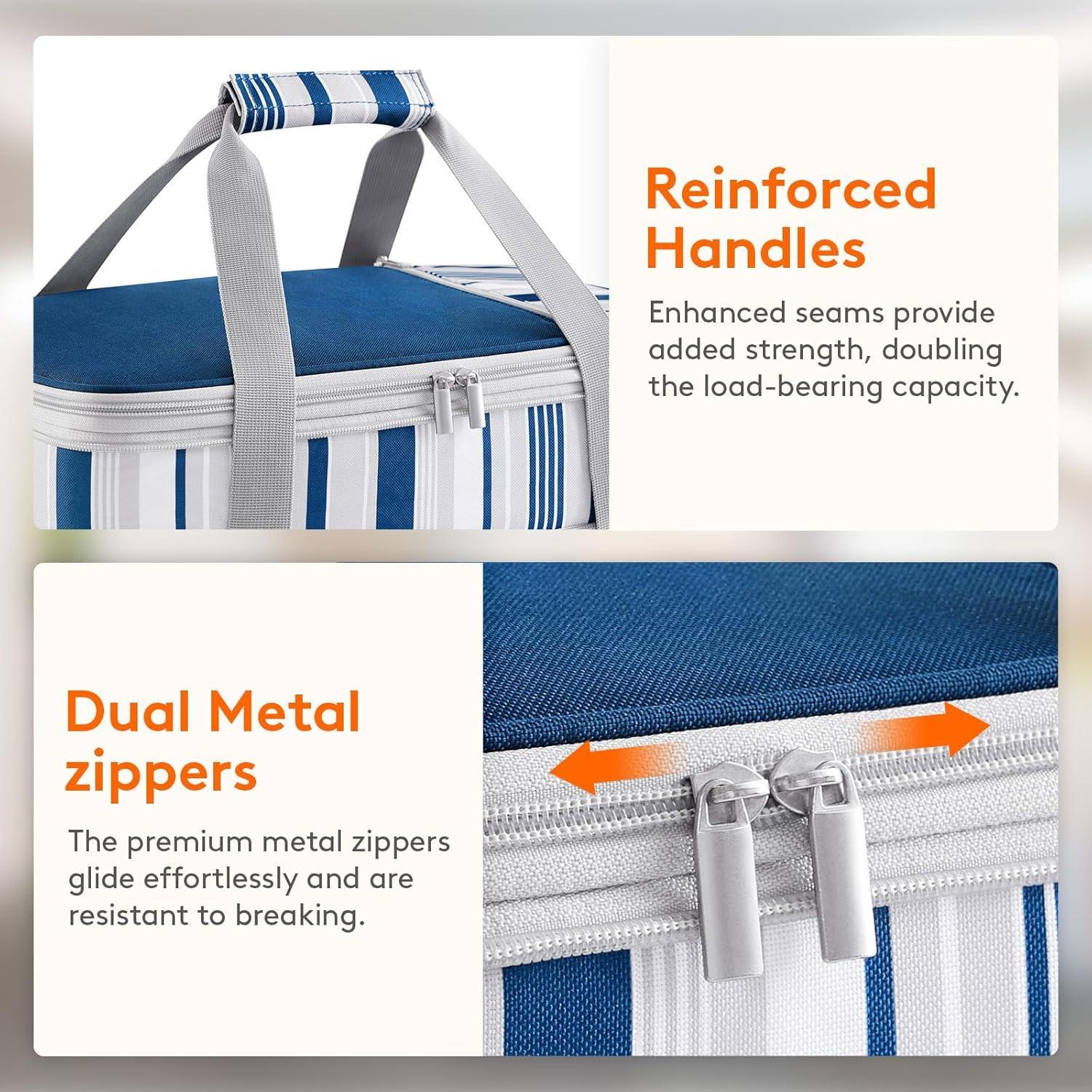Lifewit Insulated Double Casserole Carrier Thermal Lunch Tote for Potluck Parties, Picnic, Beach, Fits 9 x 13 Inches Casserole Dish, Expandable by Mid Zipper, Grey(Blue)